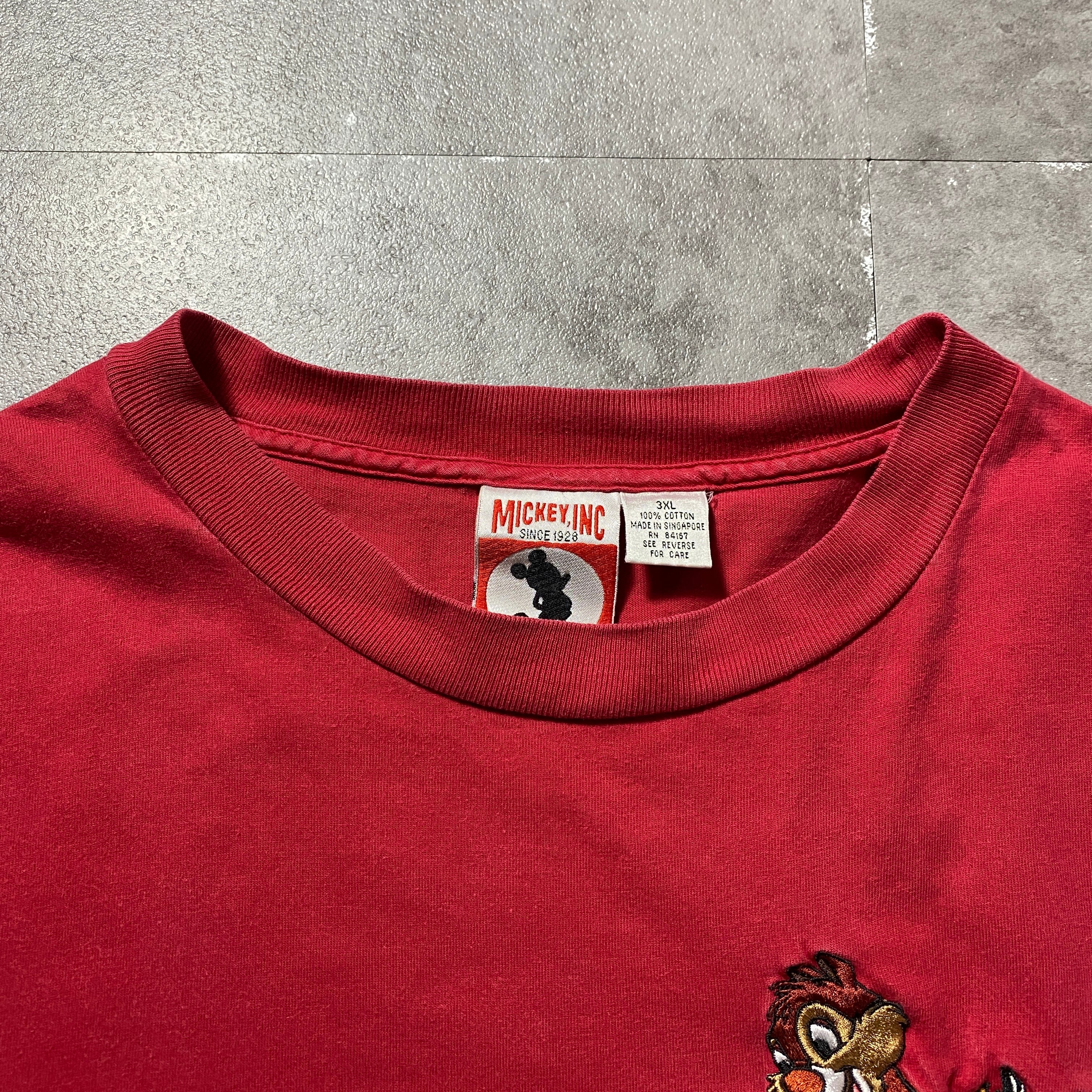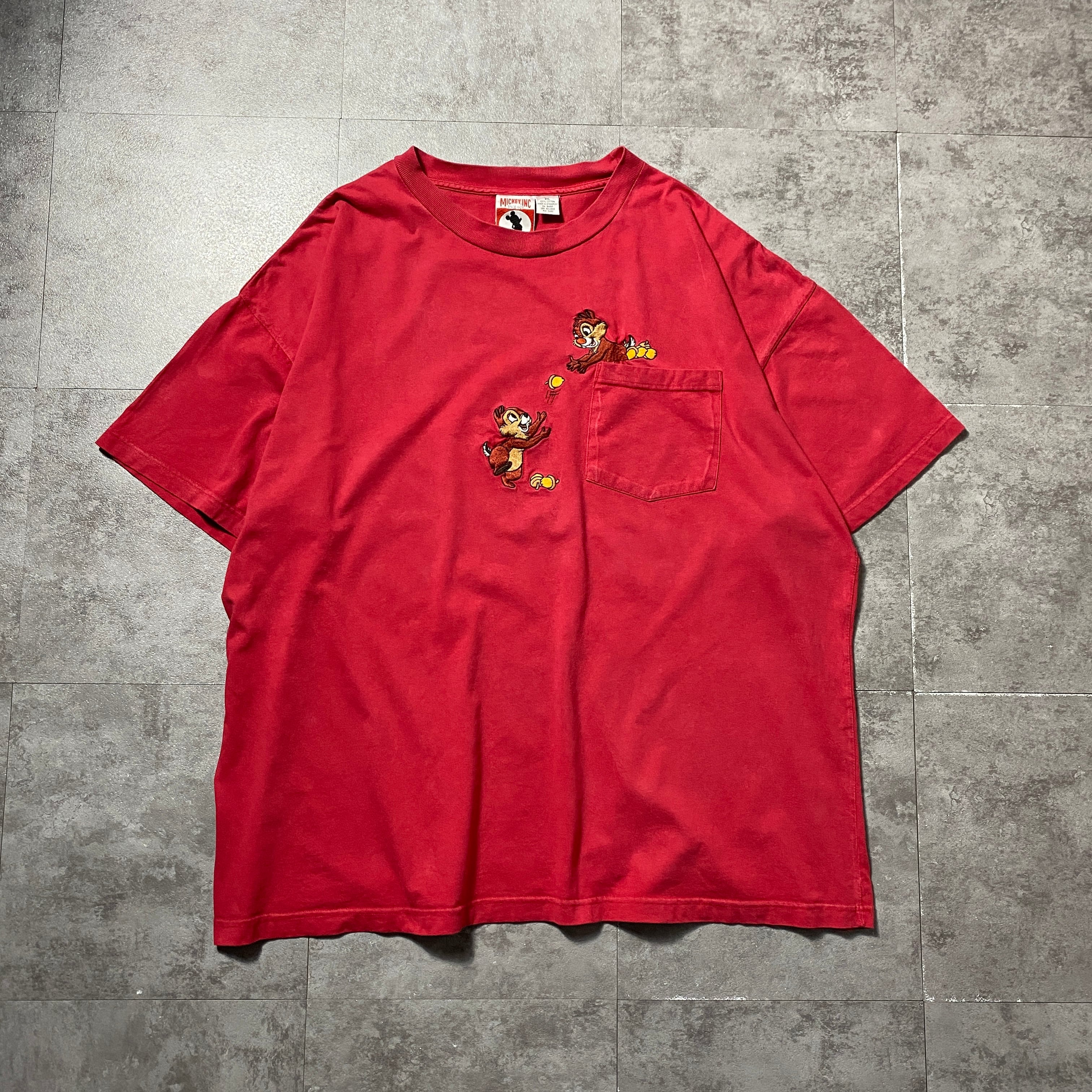 00's MICKEY INC ディズニー チップとデール 刺繍ロゴ 胸ポケット レッド 赤 Tシャツ