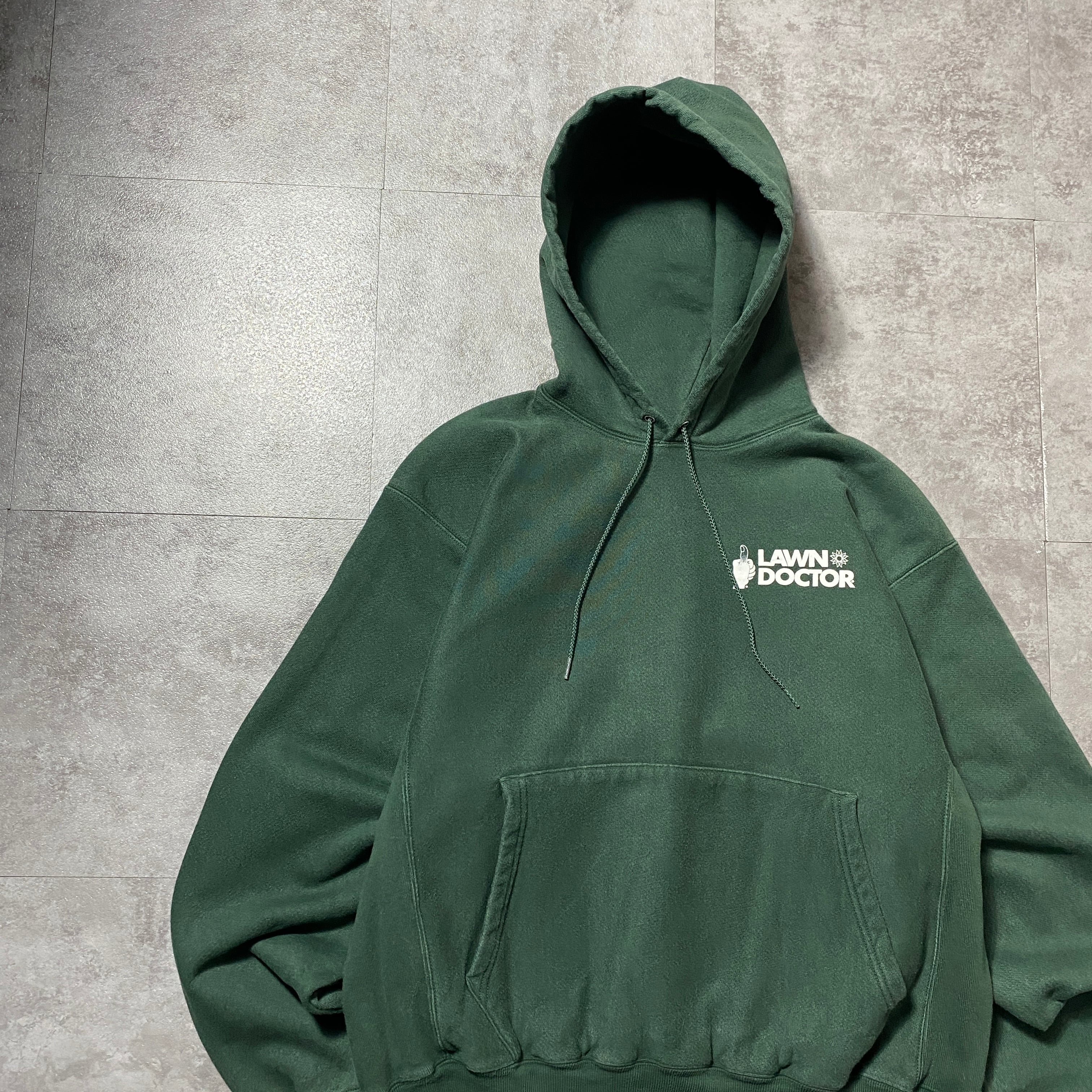 00's Champion チャンピオン プレミアムリバースウィーブ ワンポイント 企業プリント グリーン スウェット パーカー