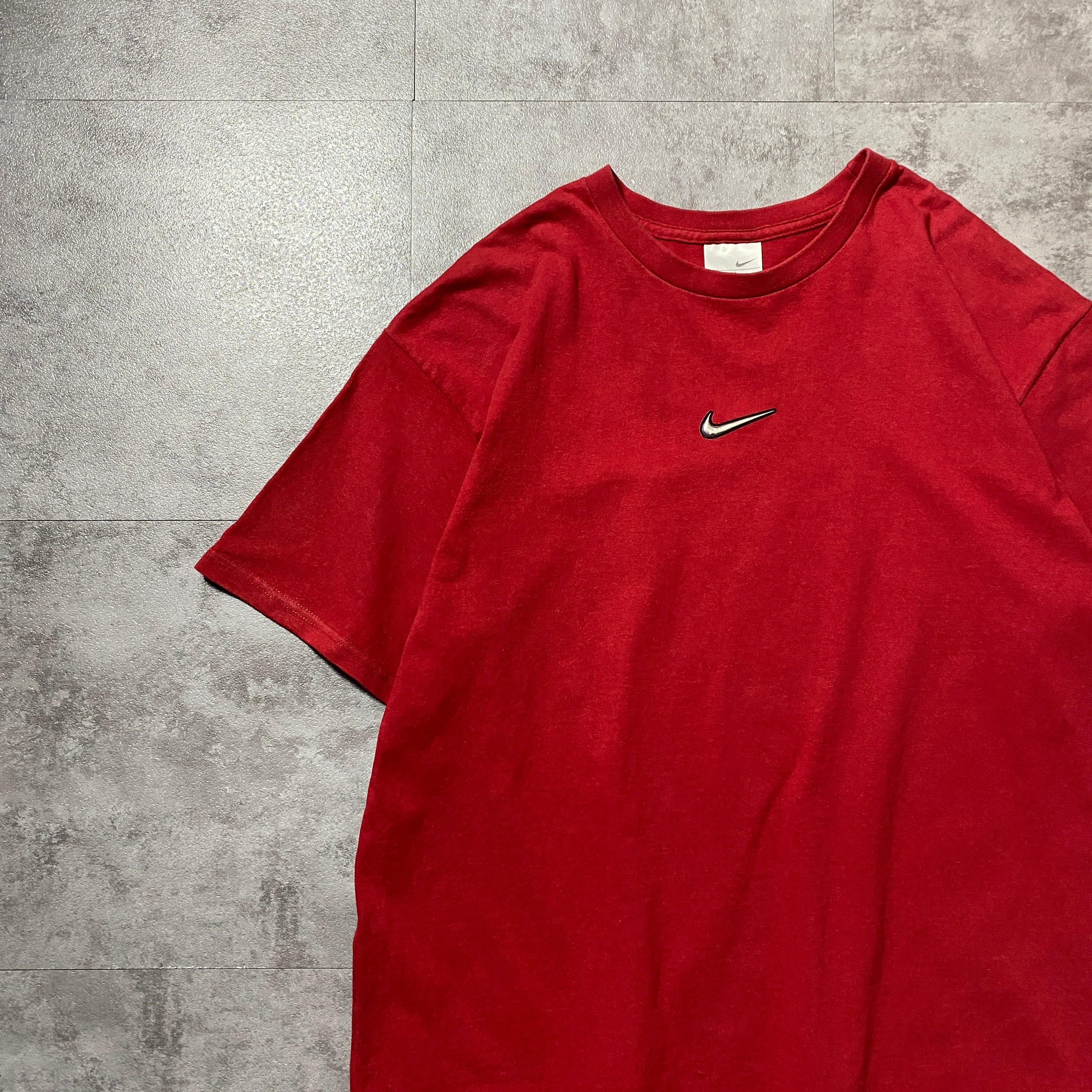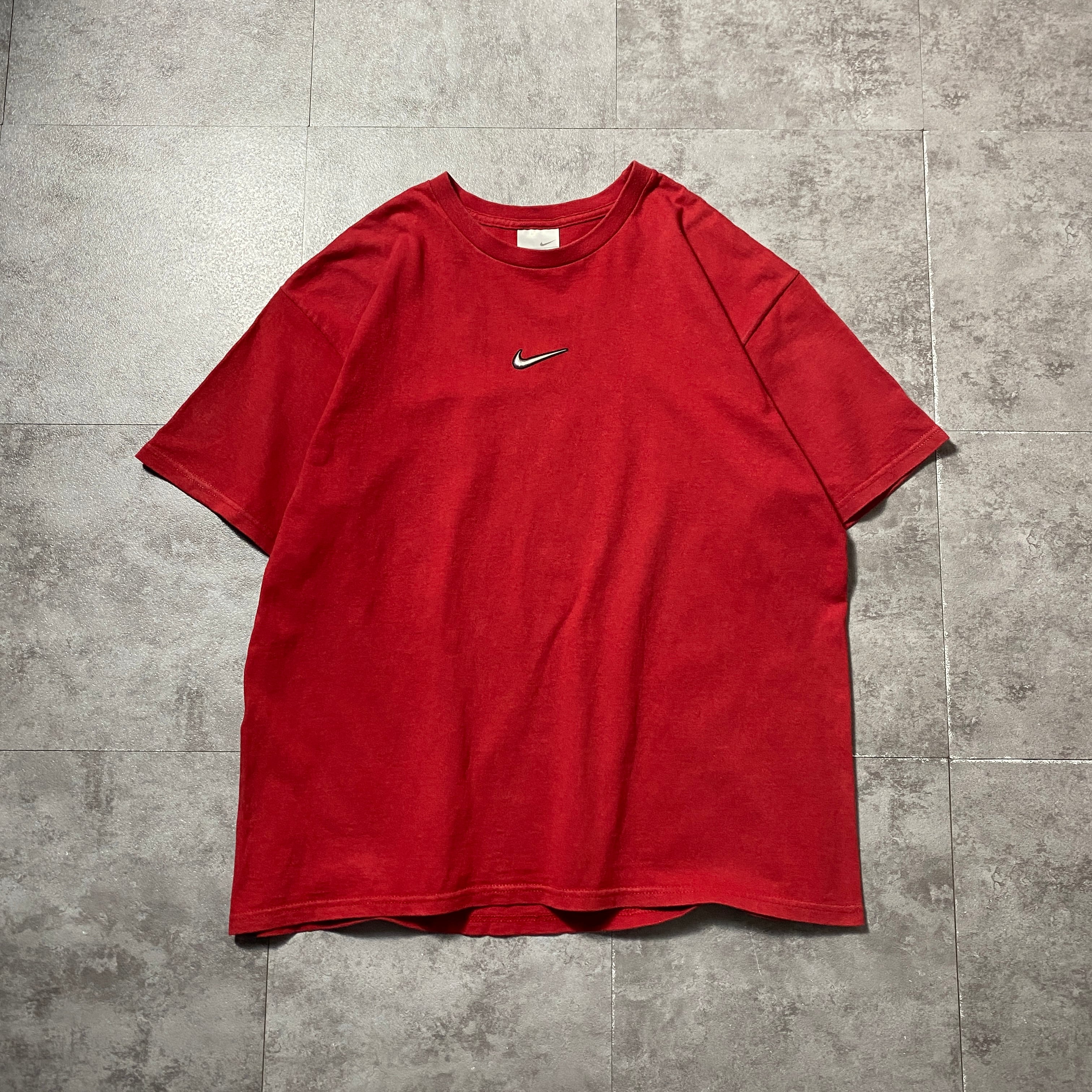 00's NIKE ナイキ センタースウォッシュ エナメル素材 ロゴ レッド 赤 Tシャツ