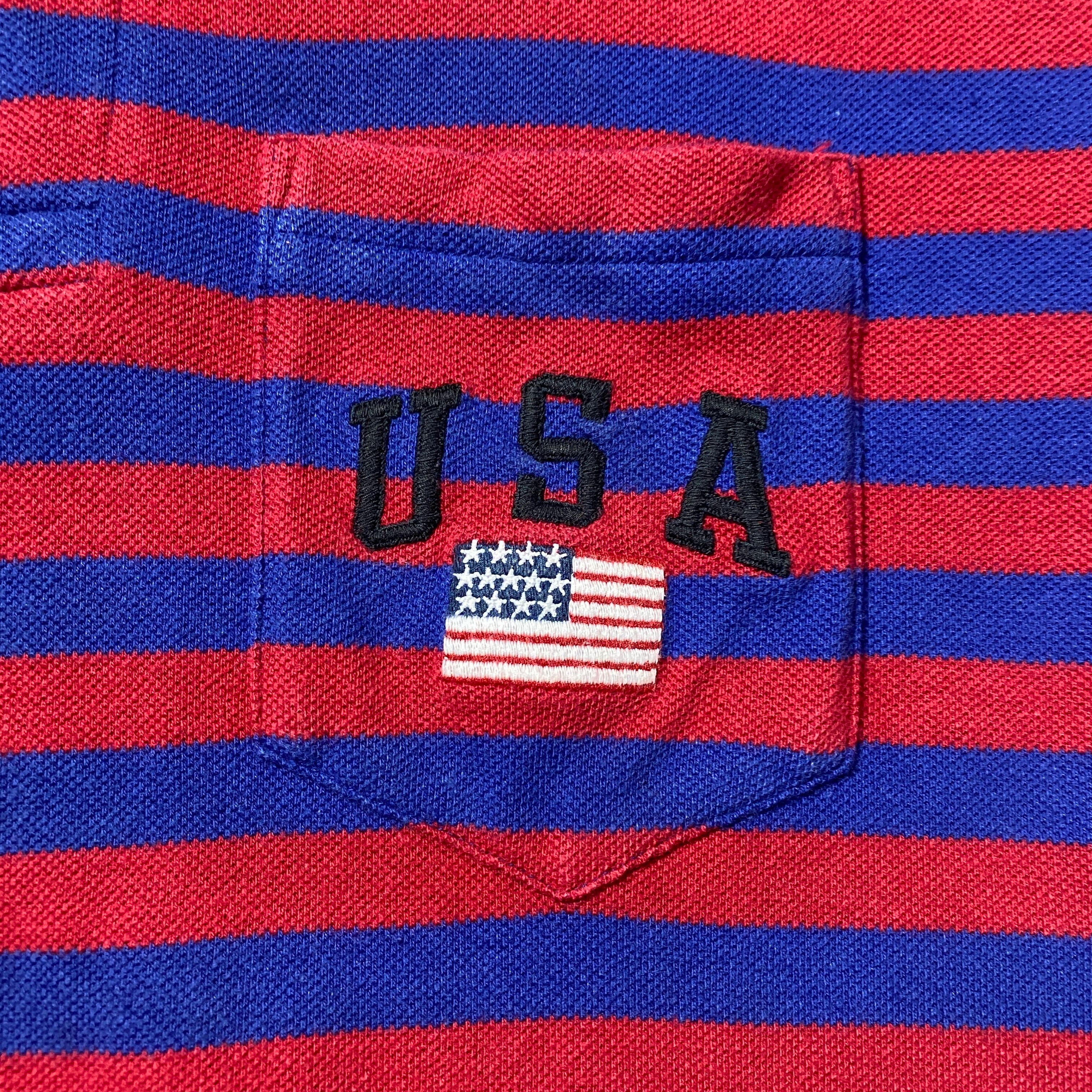 90's POLO SPORT ラルフローレン ポロスポーツ 刺繍USAロゴ 胸ポケット ボーダー Tシャツ ポロシャツ