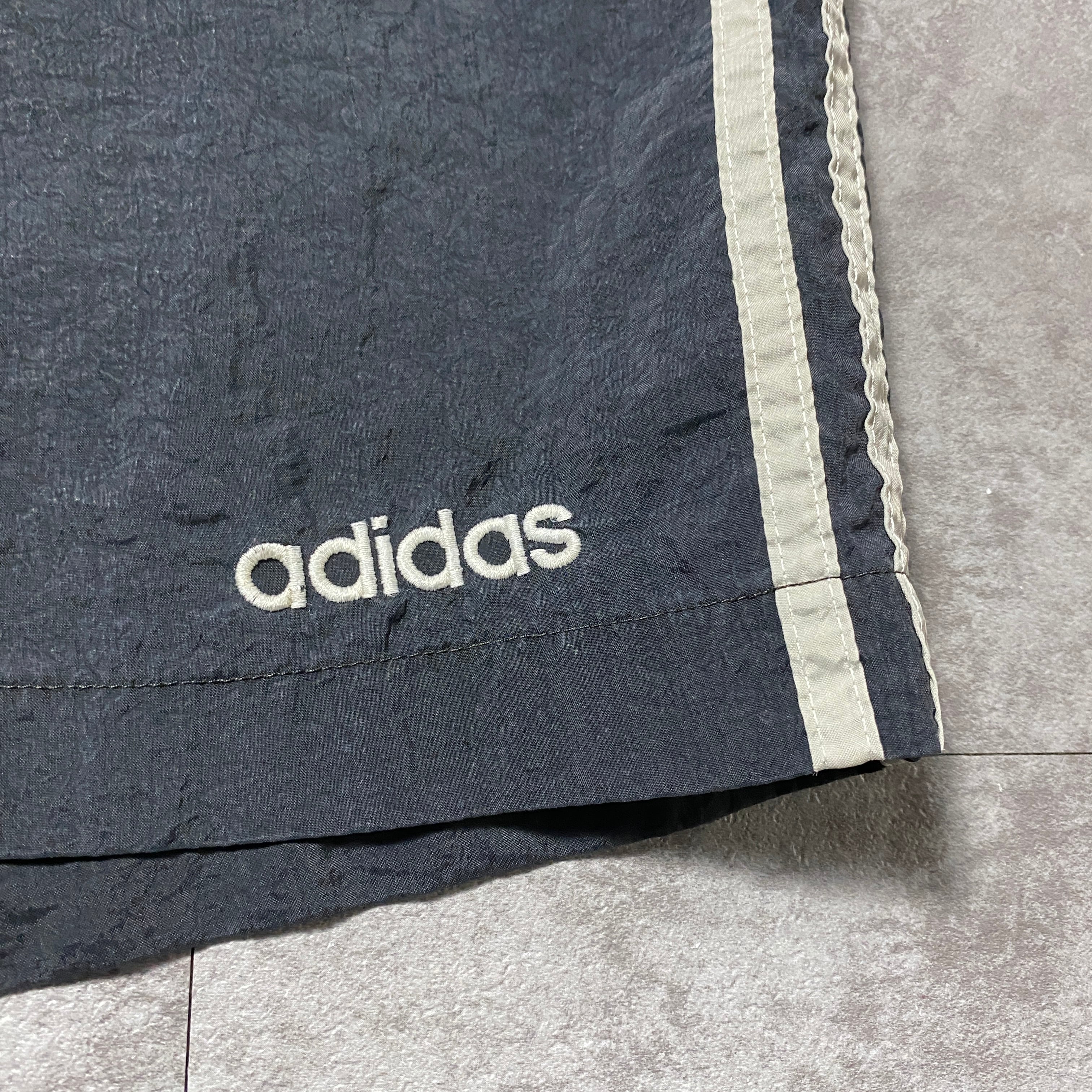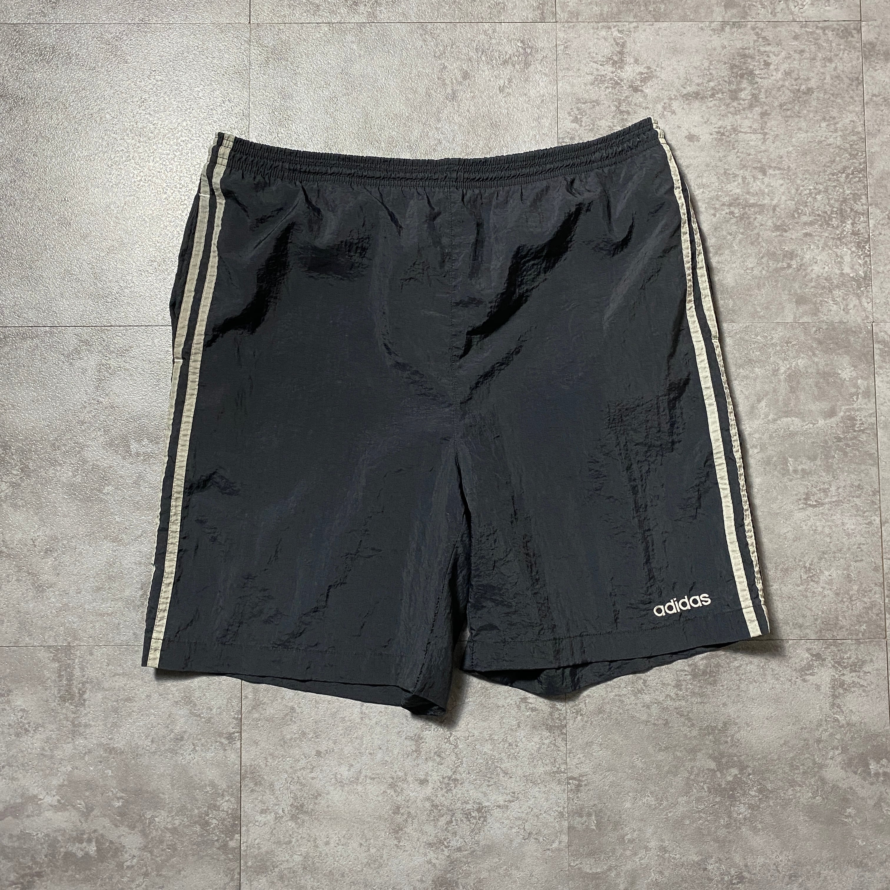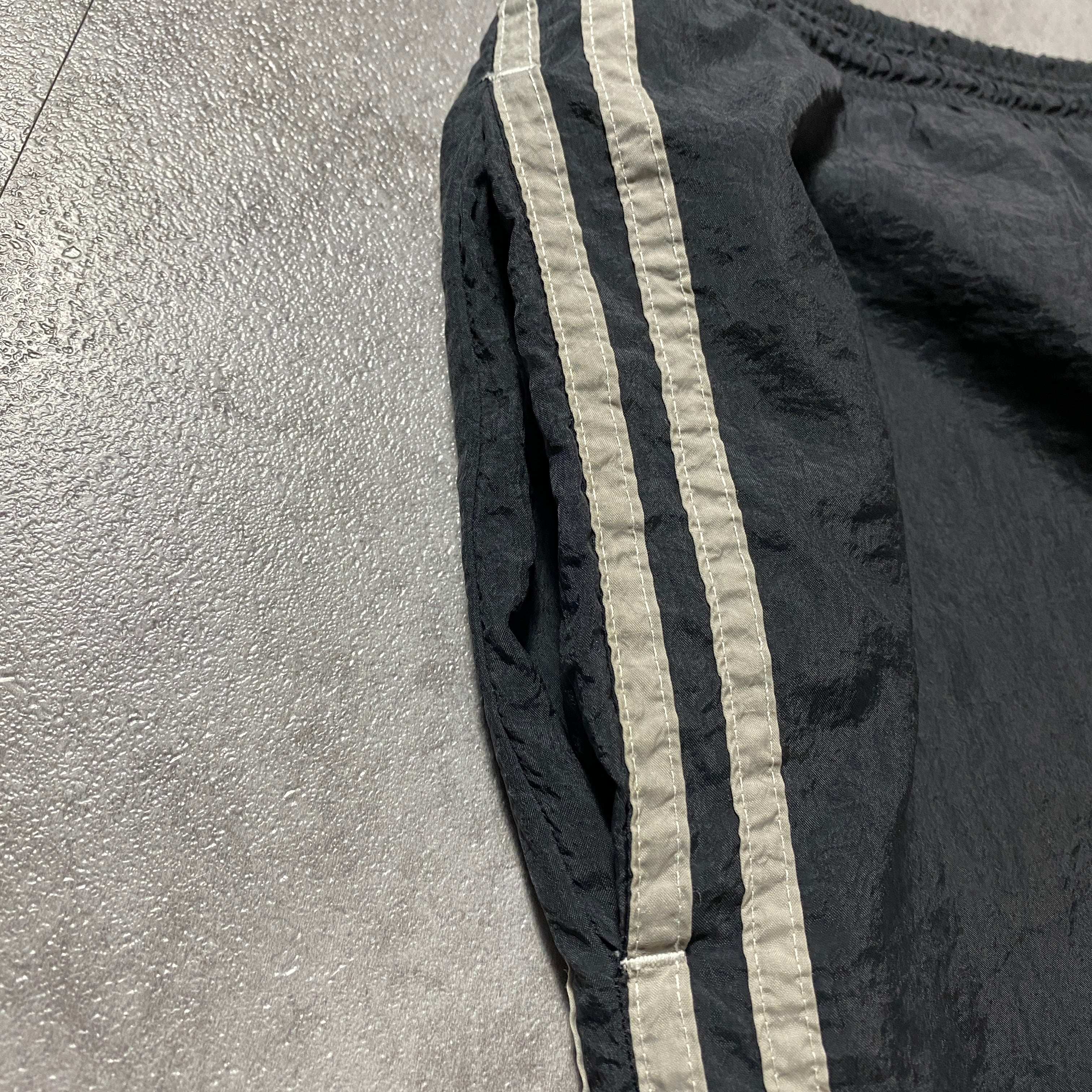 90’s adidas アディダス 刺繍ロゴ サイドストライプ ブラック 黒 ナイロン ショーツ トラックパンツ