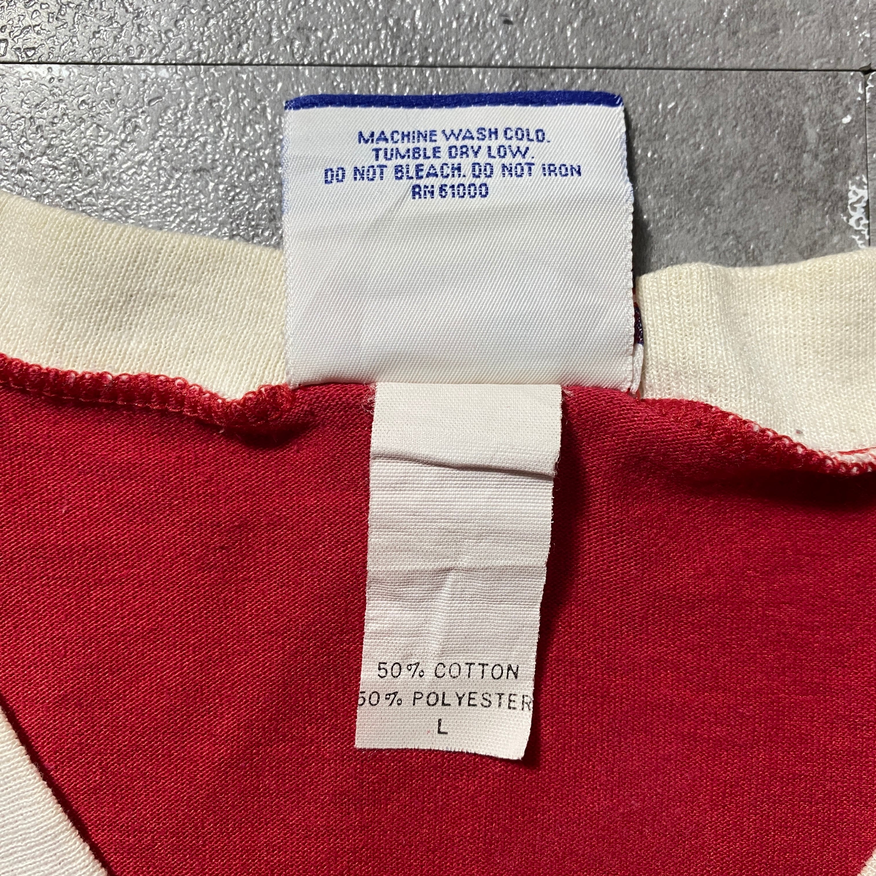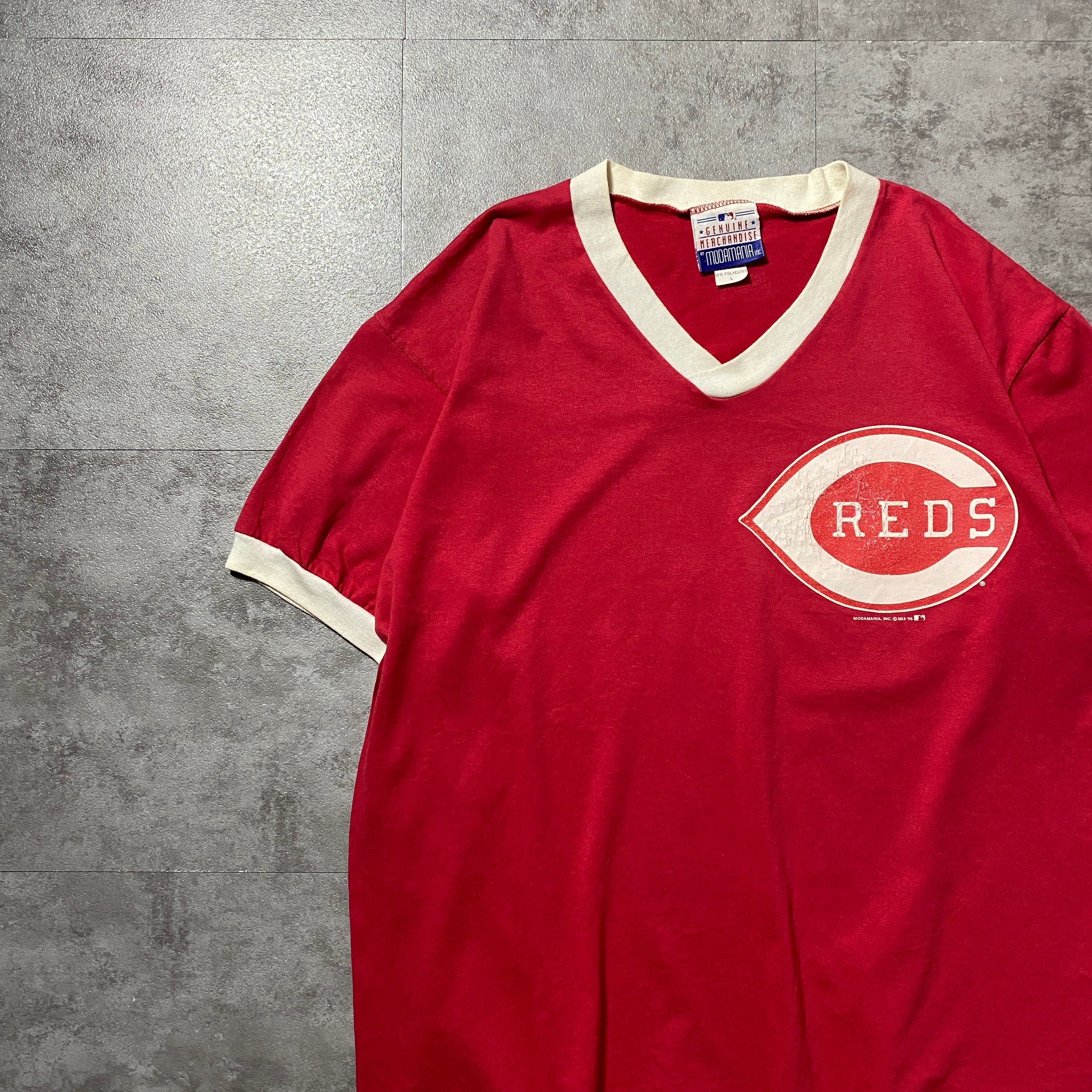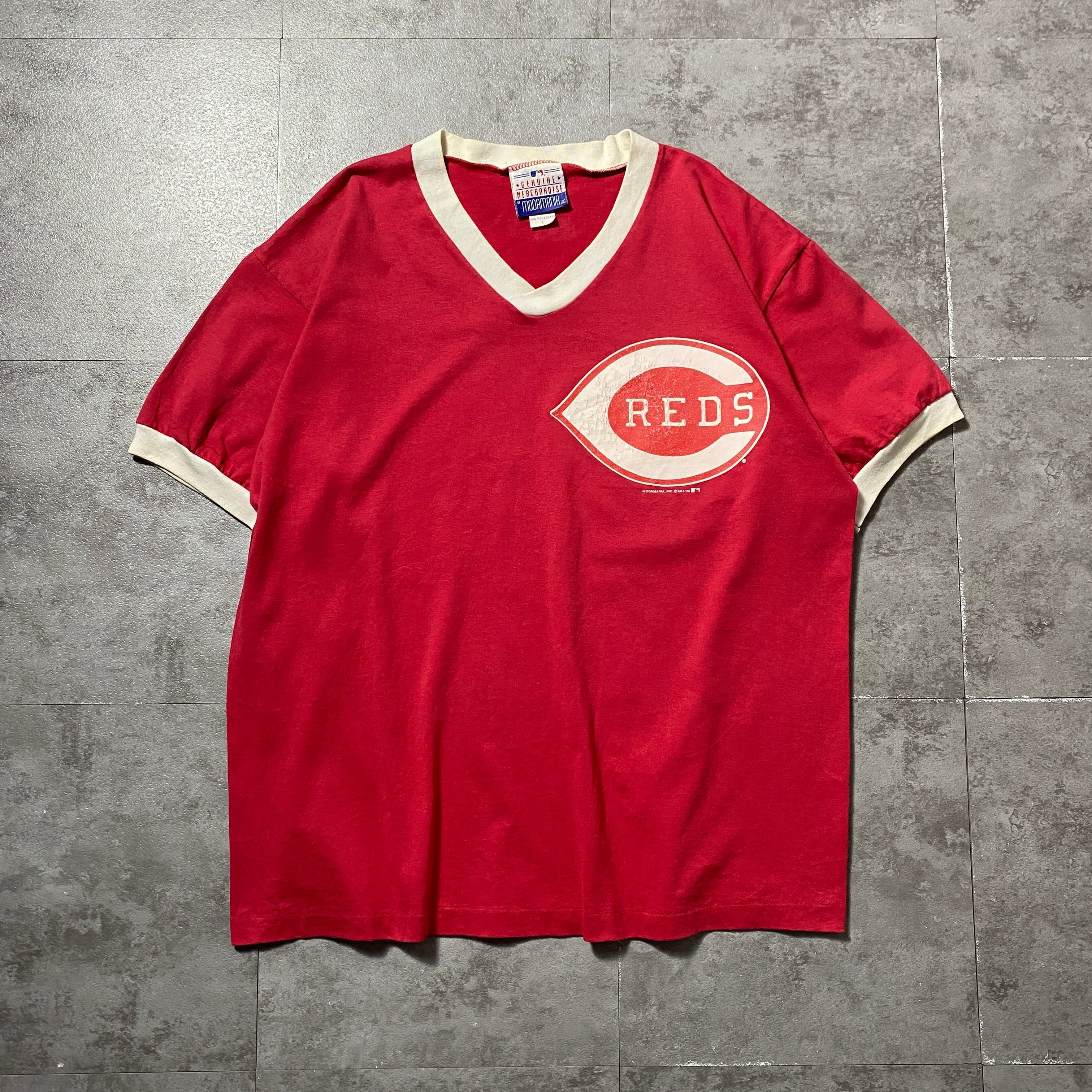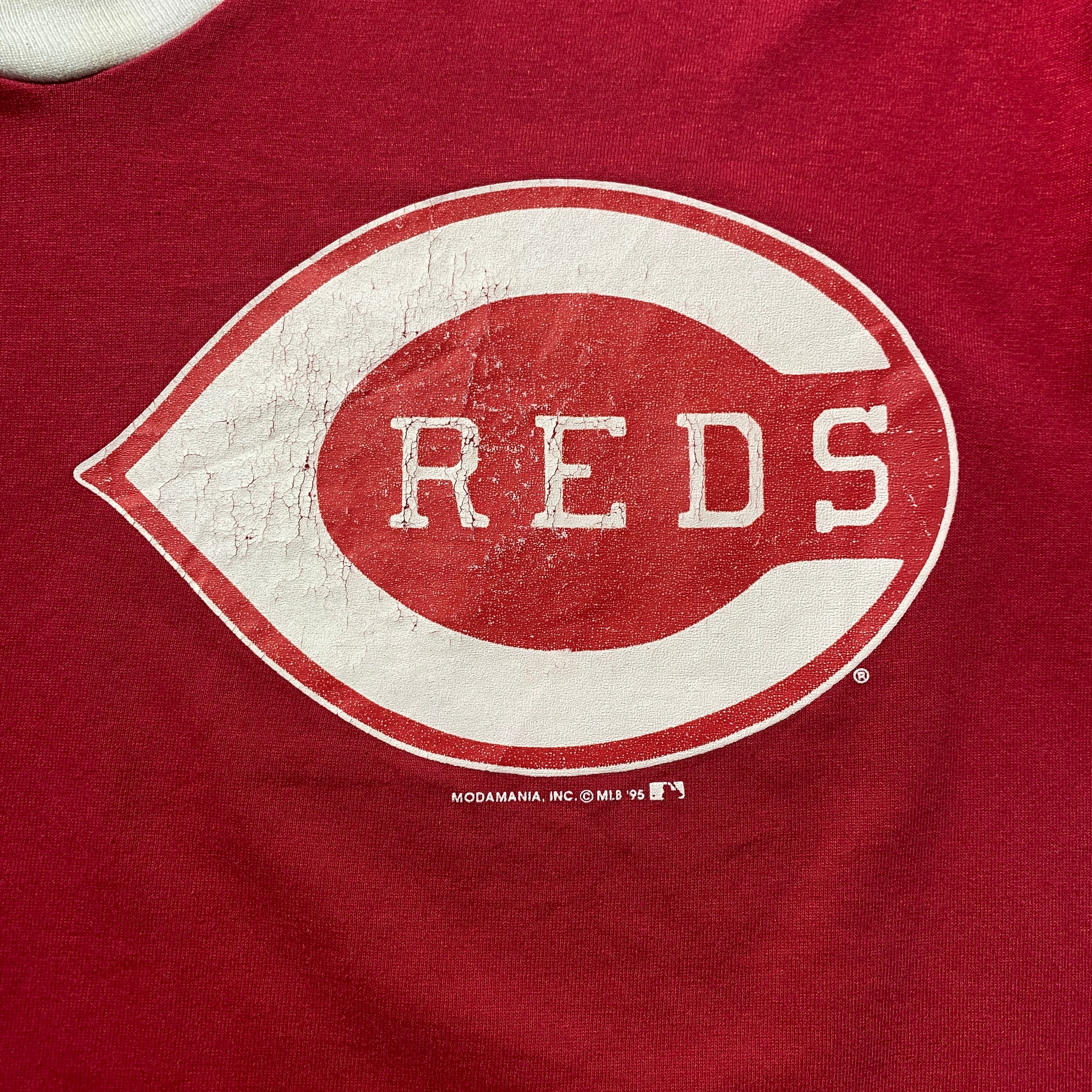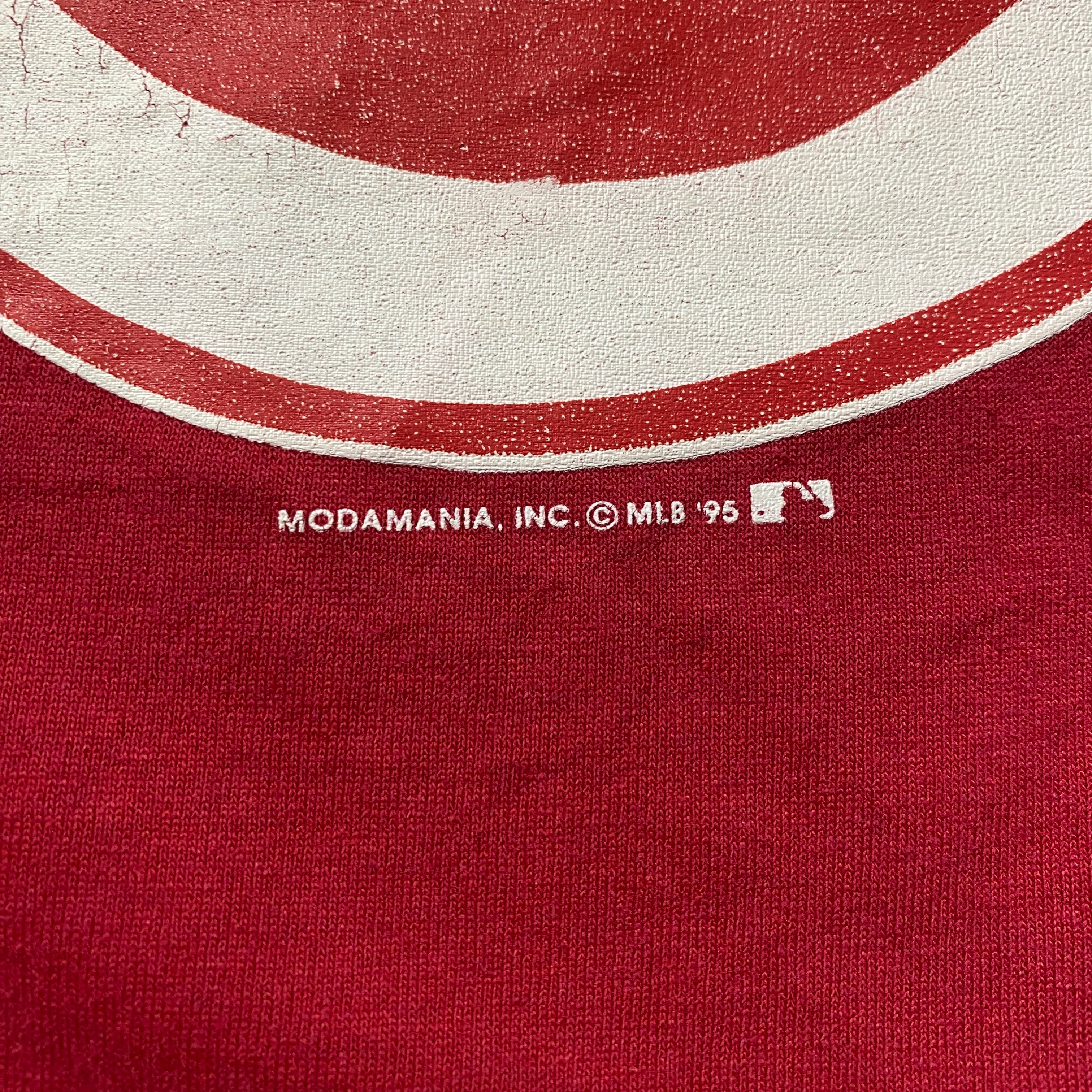 90's MLB シンシナティ・レッズ プリント コピーライト1995 シングルステッチ レッド 赤 リンガーネック Tシャツ