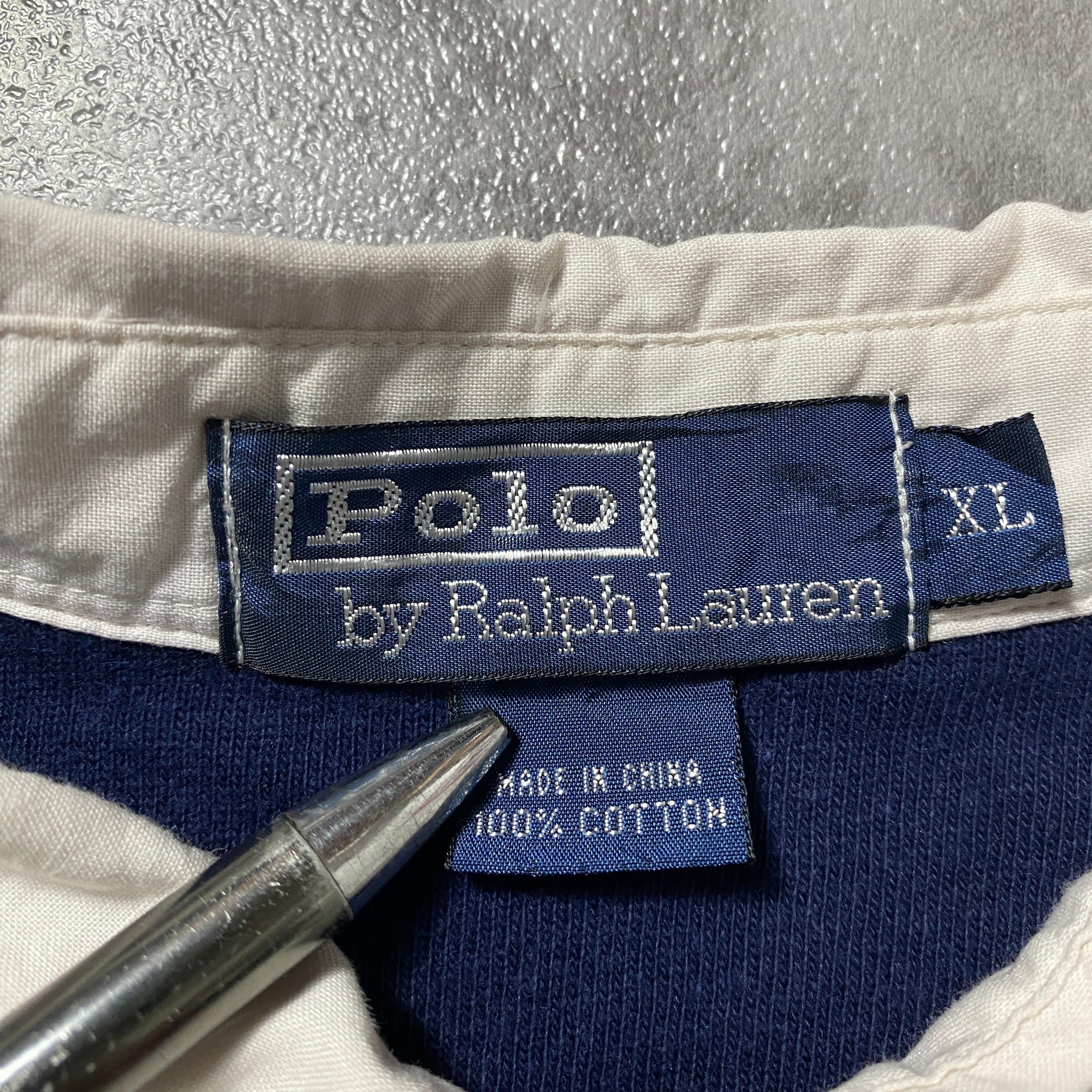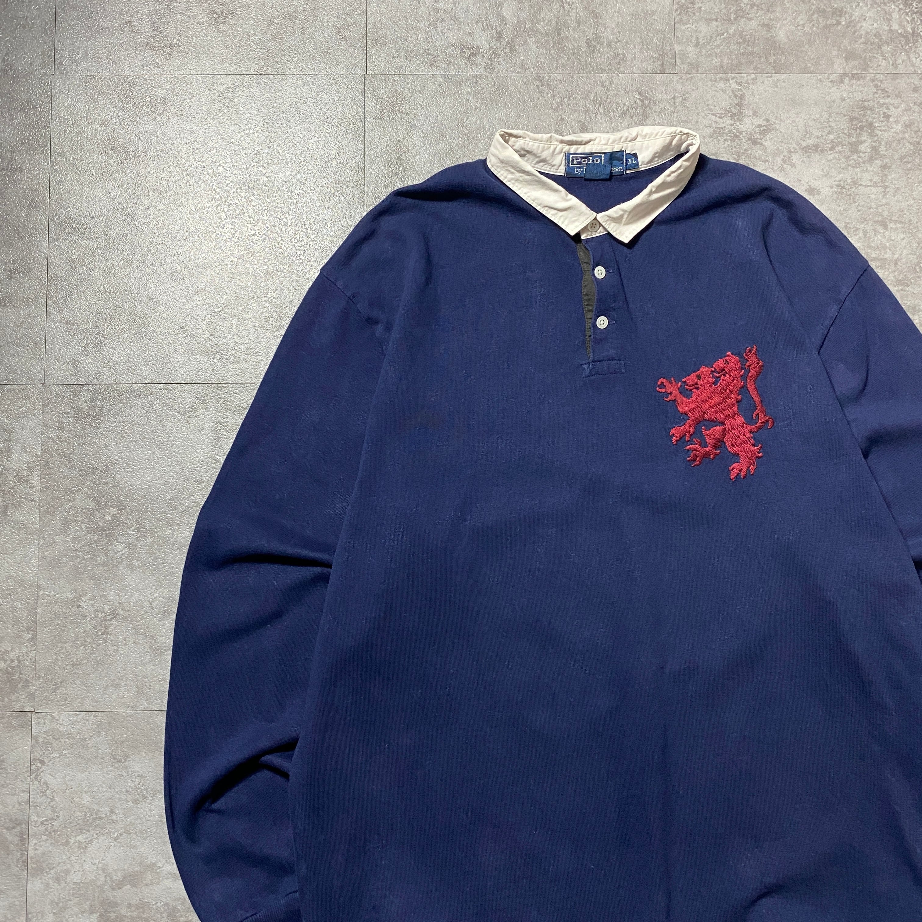 【Size.XL】90's Polo by Ralph Lauren ポロバイラルフローレン ライオン 刺繍ロゴ ネイビー ポロシャツ ラガーシャツ