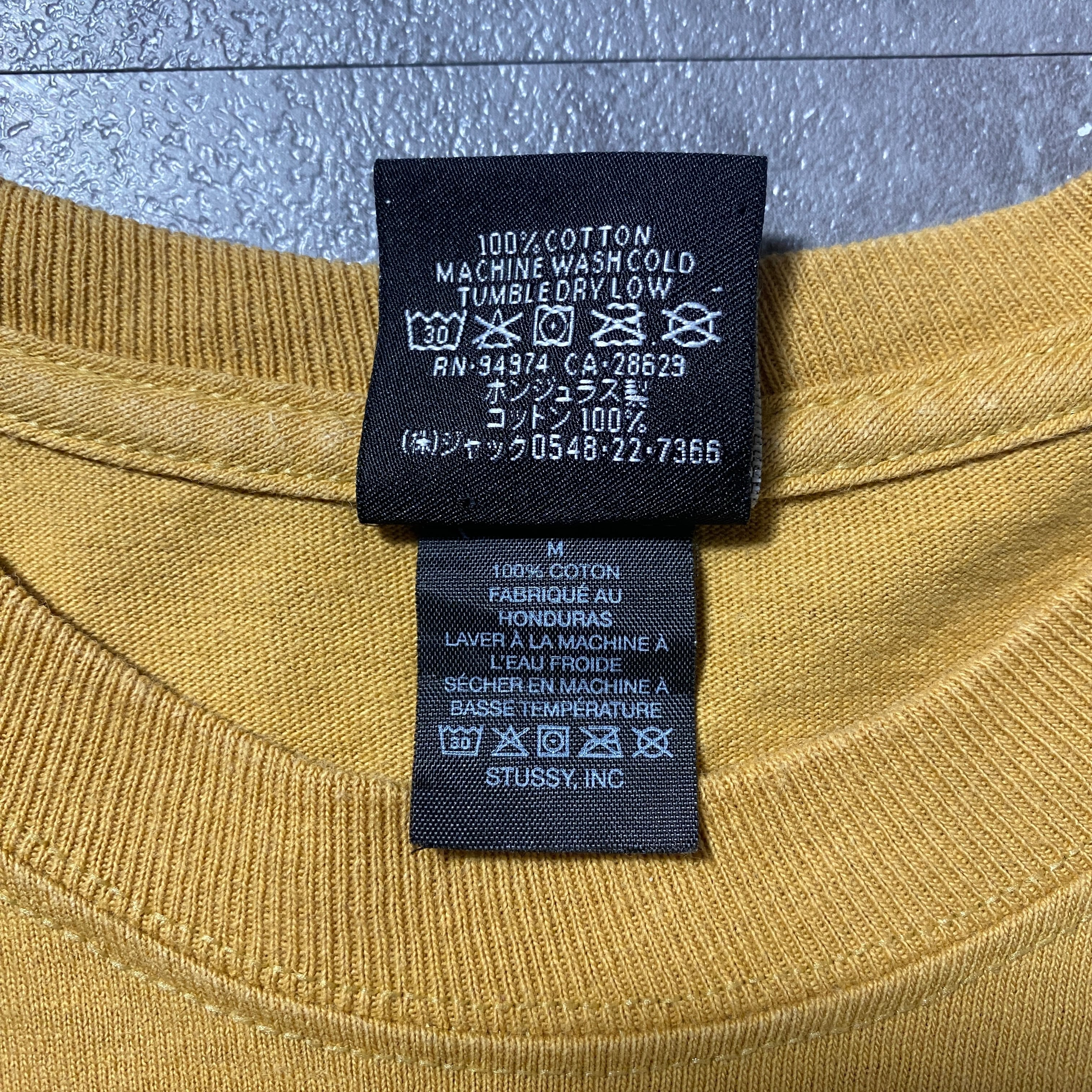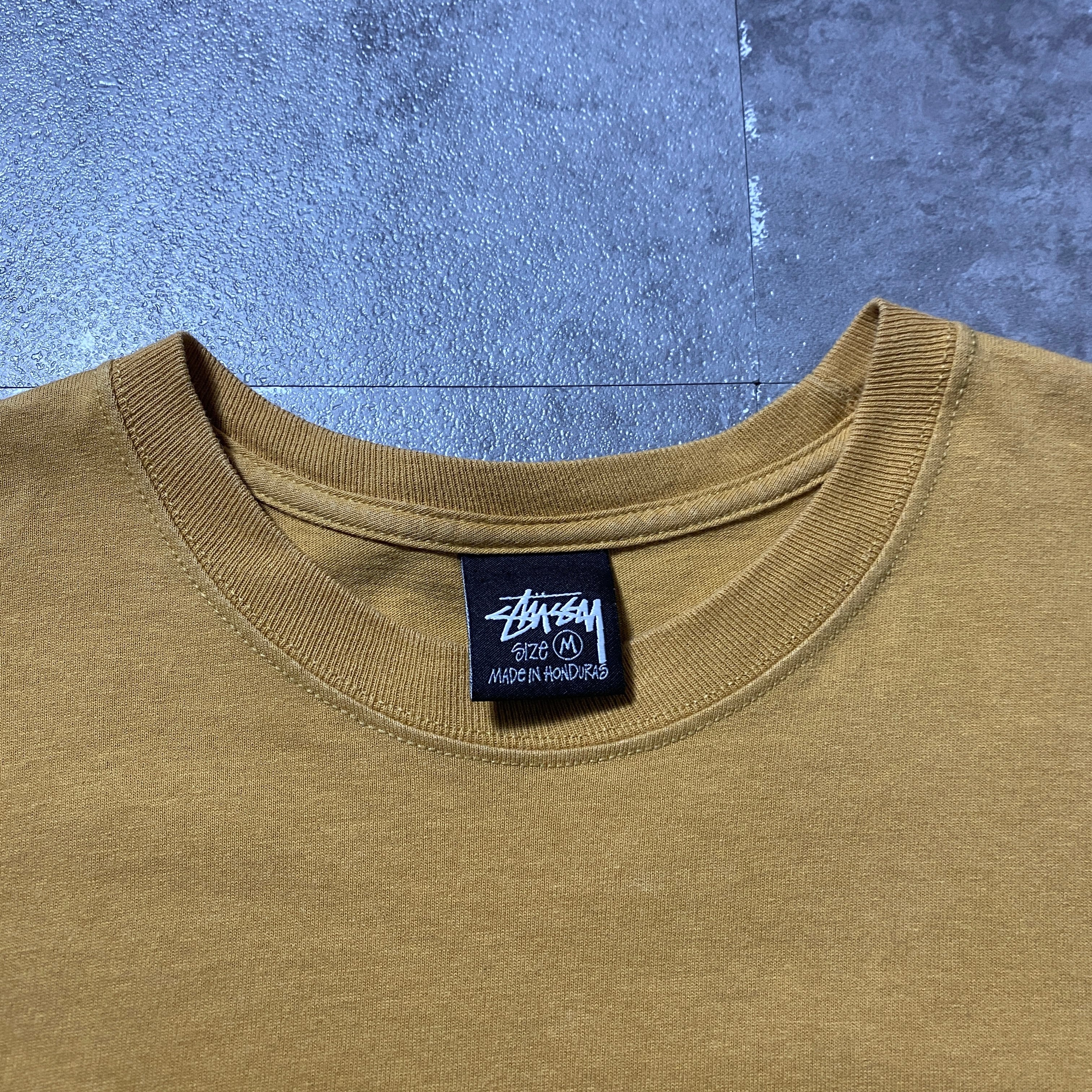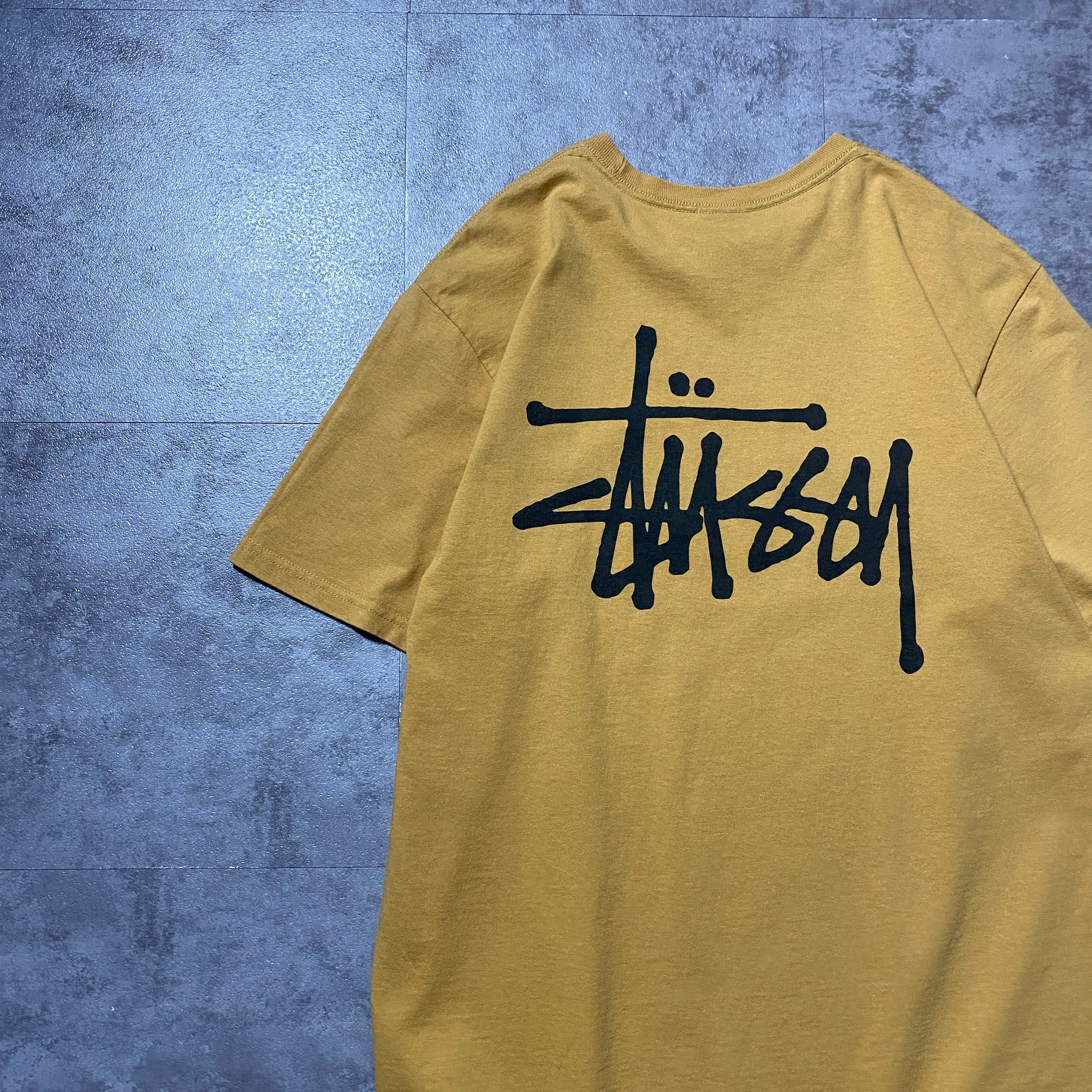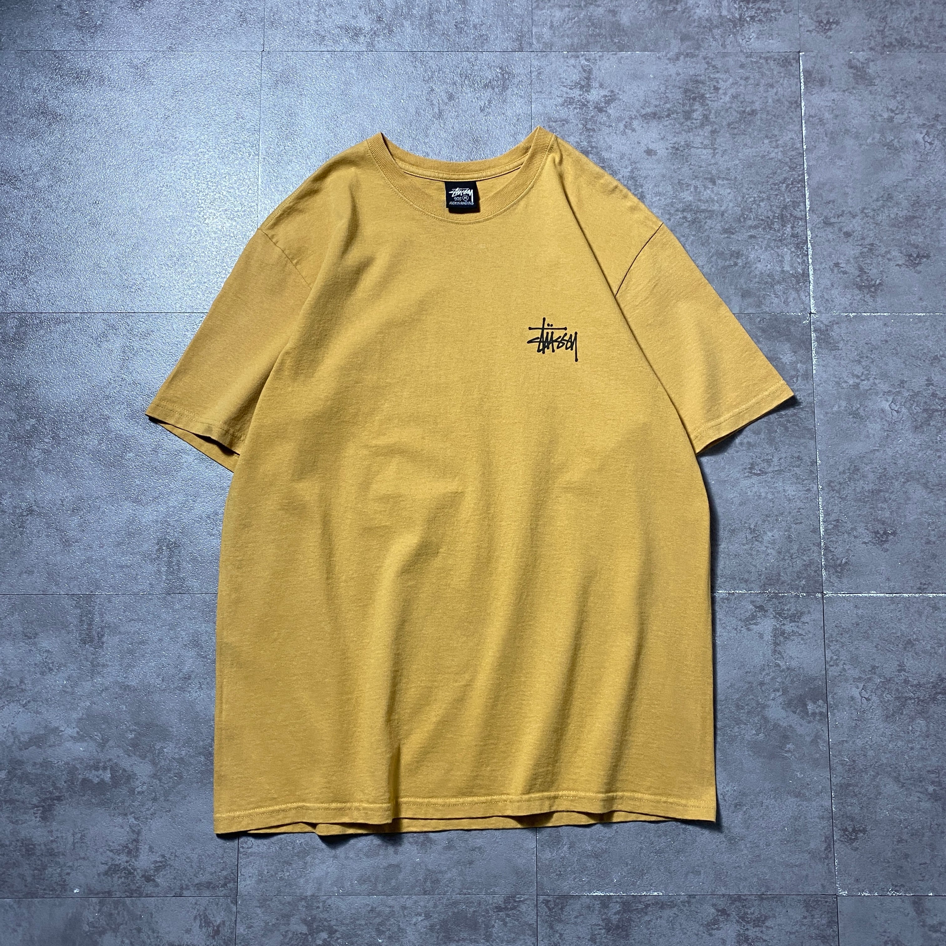 stussy ステューシー ショーンフォント バックプリント マスタードイエロー Tシャツ