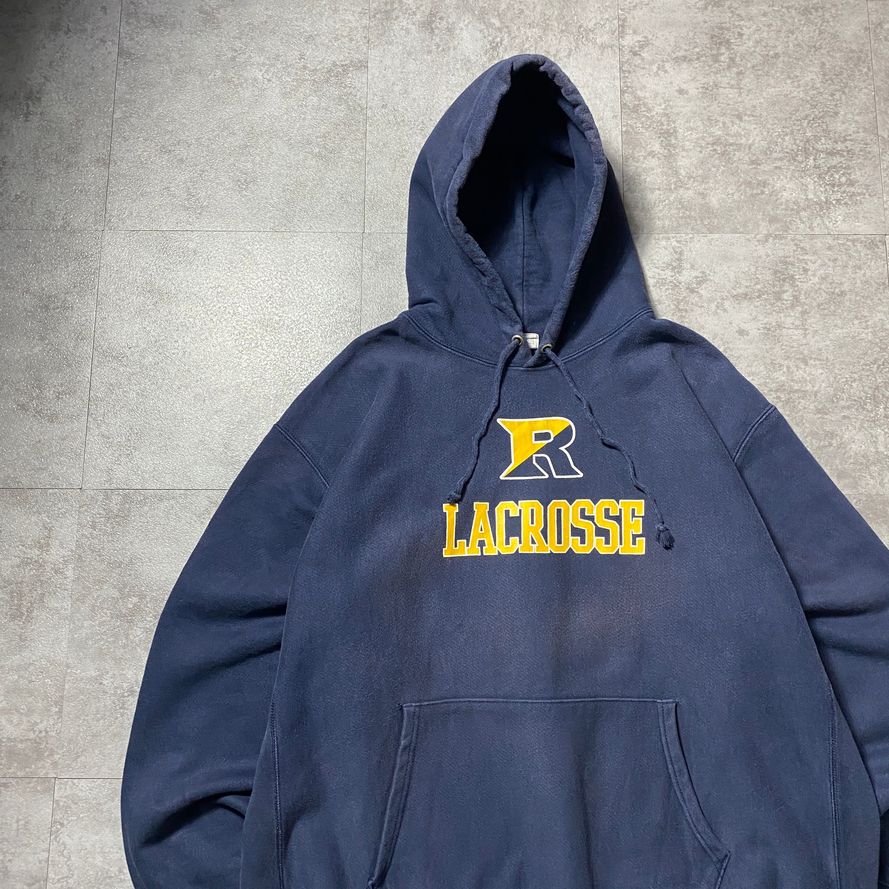 00's Champion チャンピオン リバースウィーブ ラクロス プリント 2XLサイズ ネイビー スウェット パーカー
