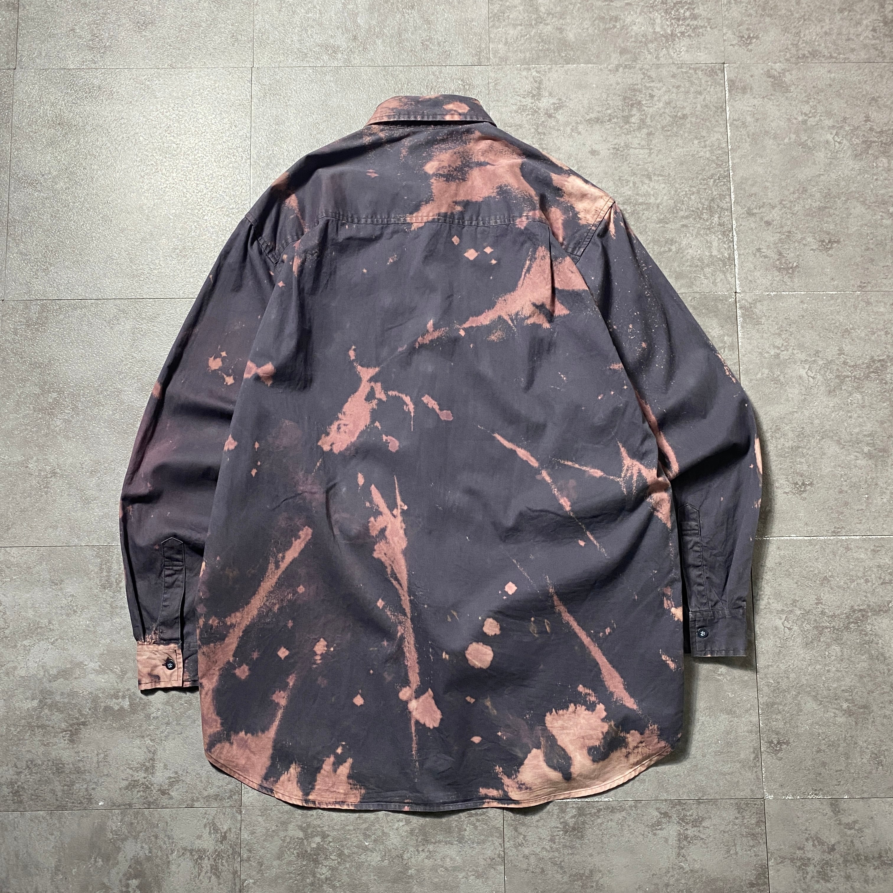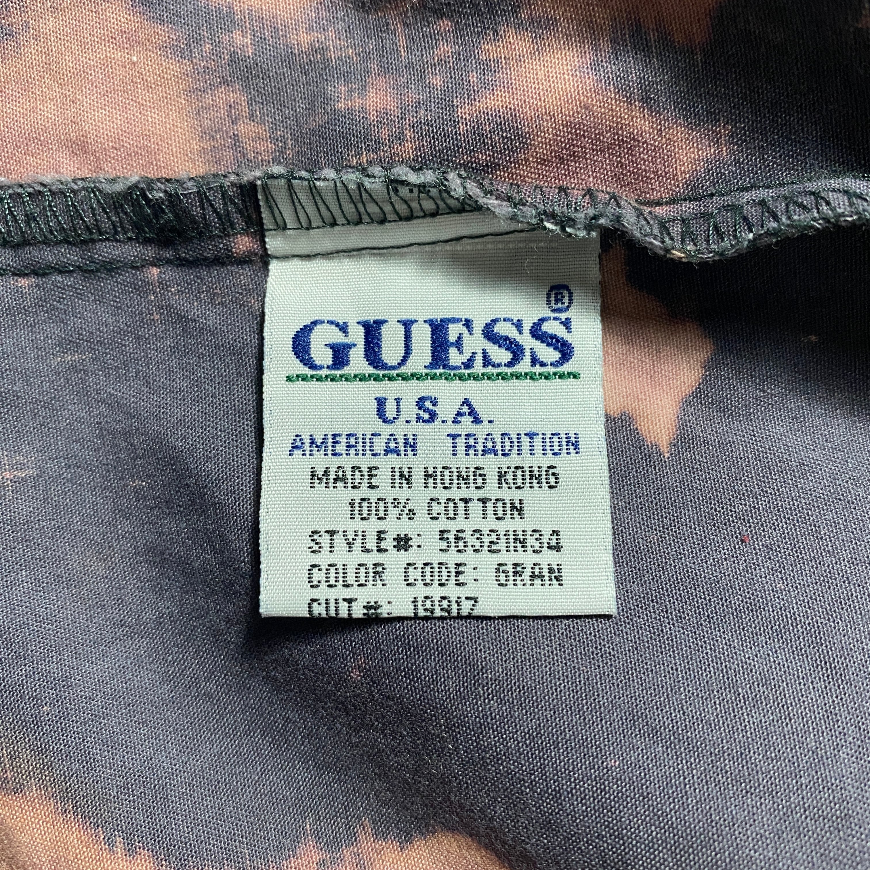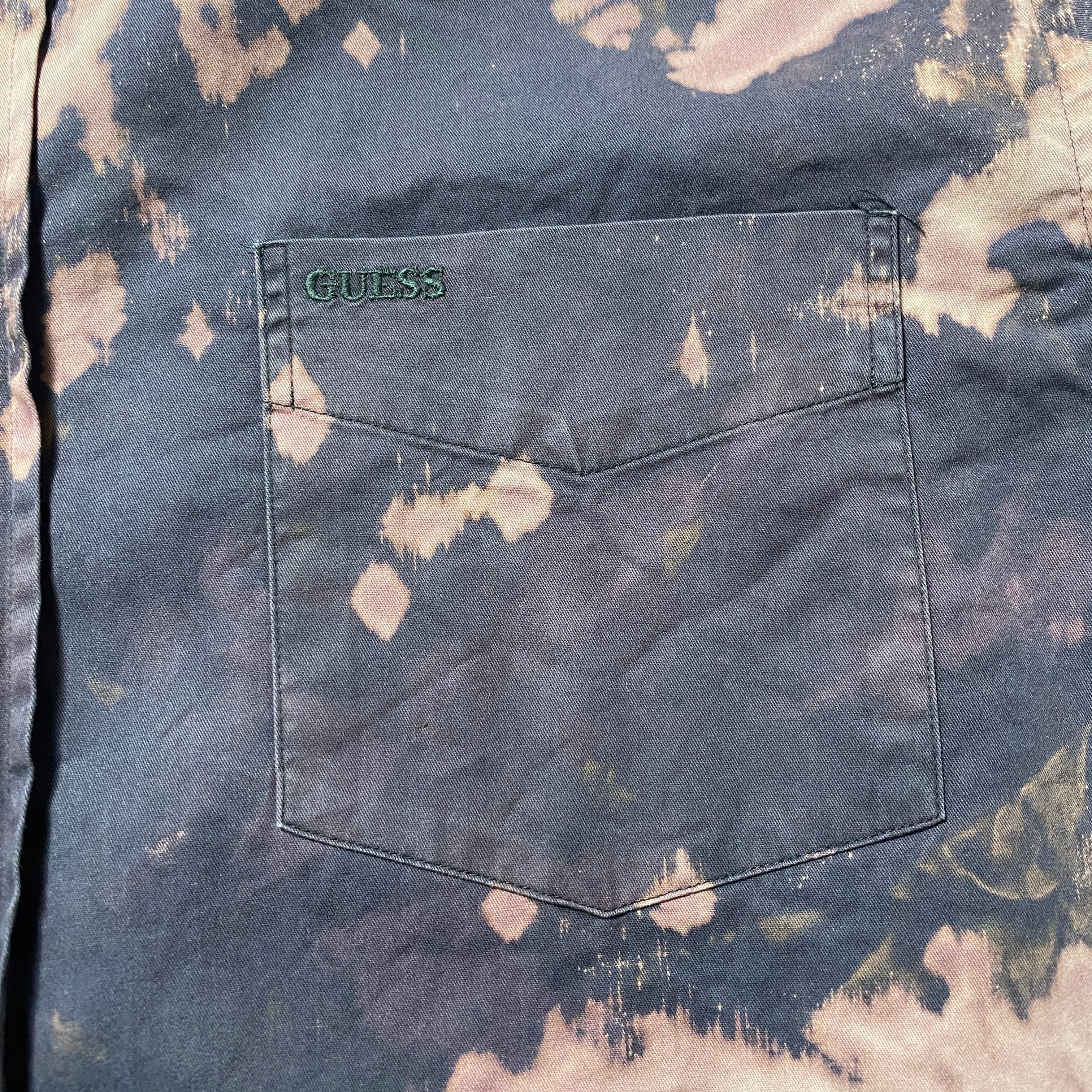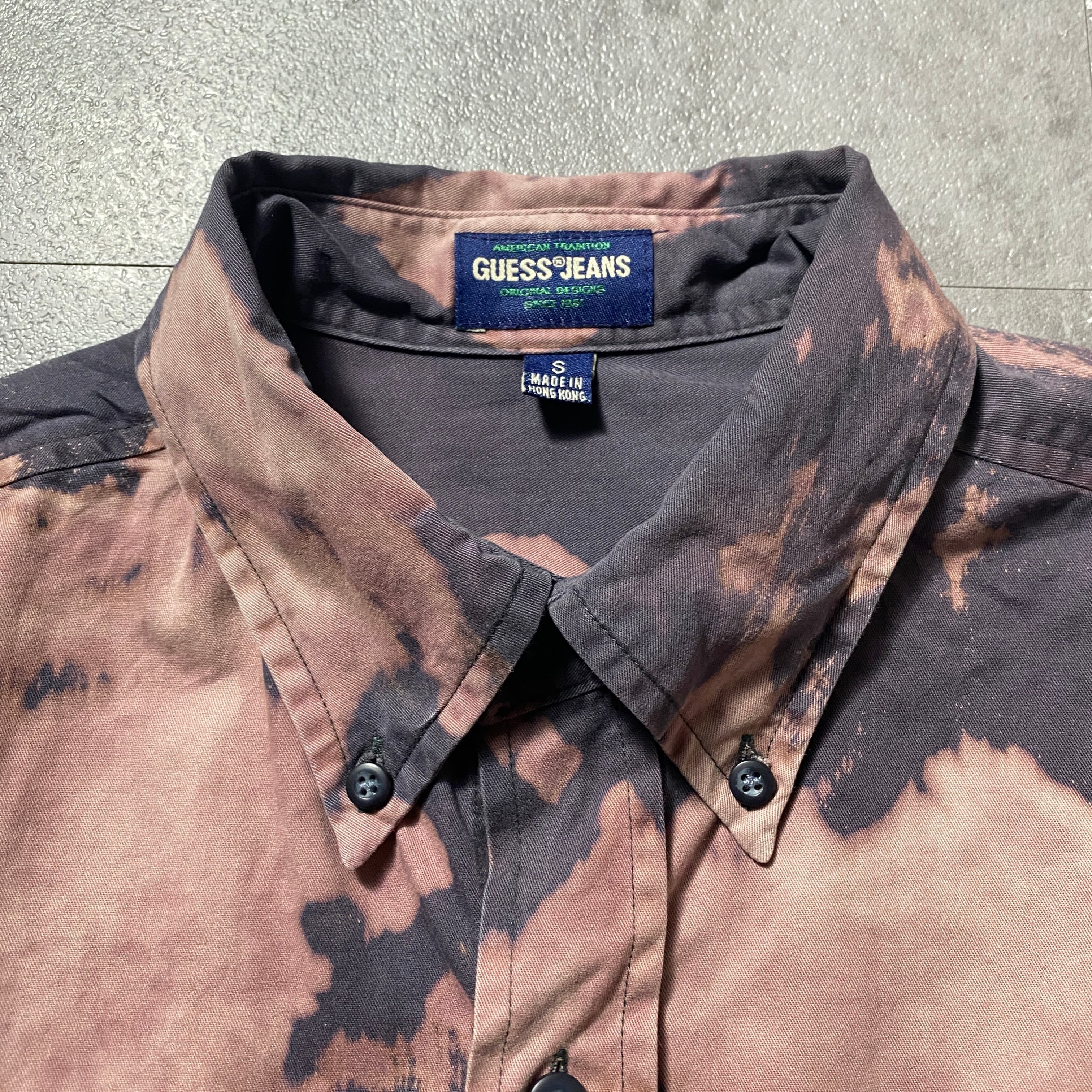 90's GUESS JEANS ゲスジーンズ ブリーチ加工 刺繍ワンポイント 胸ポケット ボタンダウンシャツ