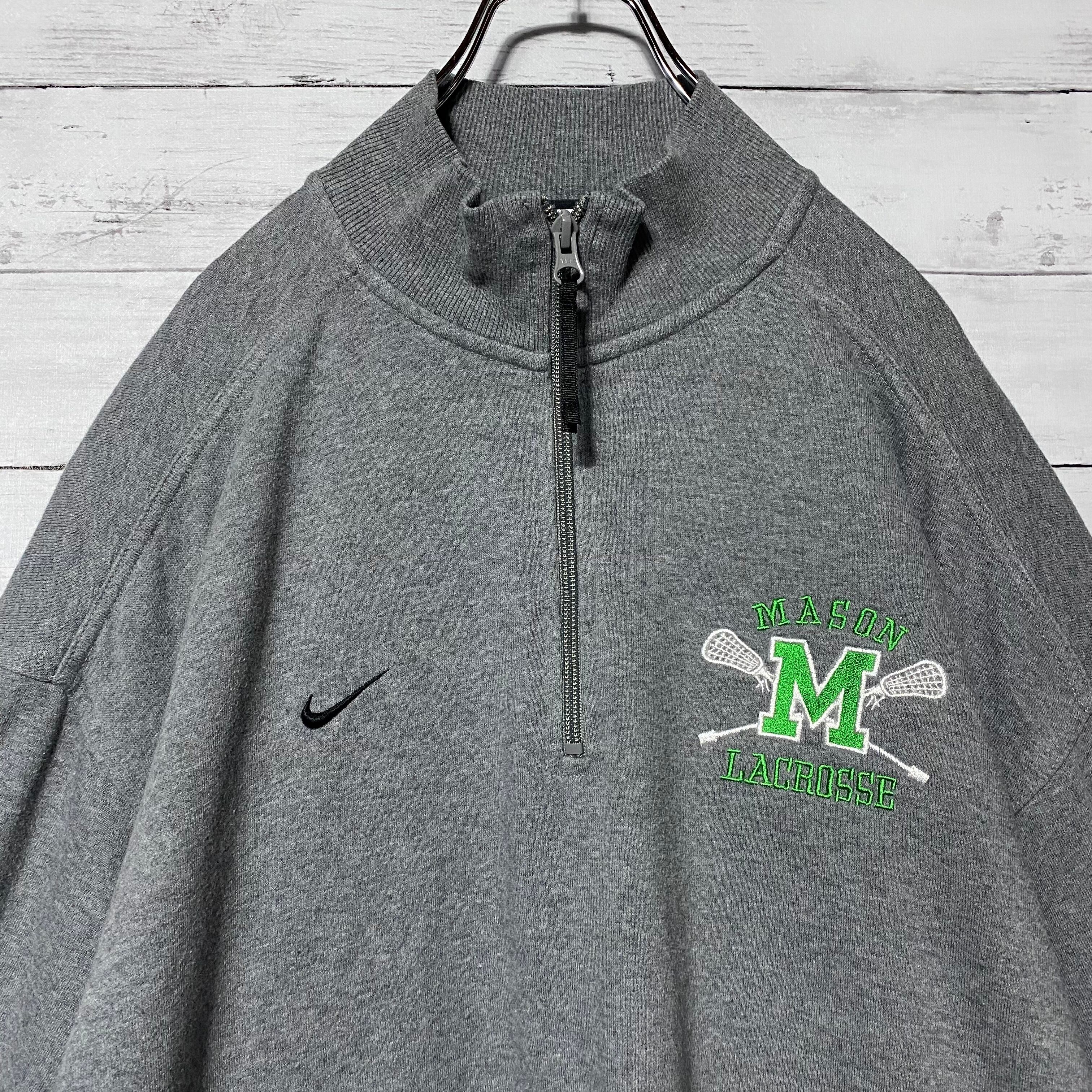 ナイキ ジョージメイソン大学ラクロス部 刺繍カレッジロゴ ハーフジップ スウェット