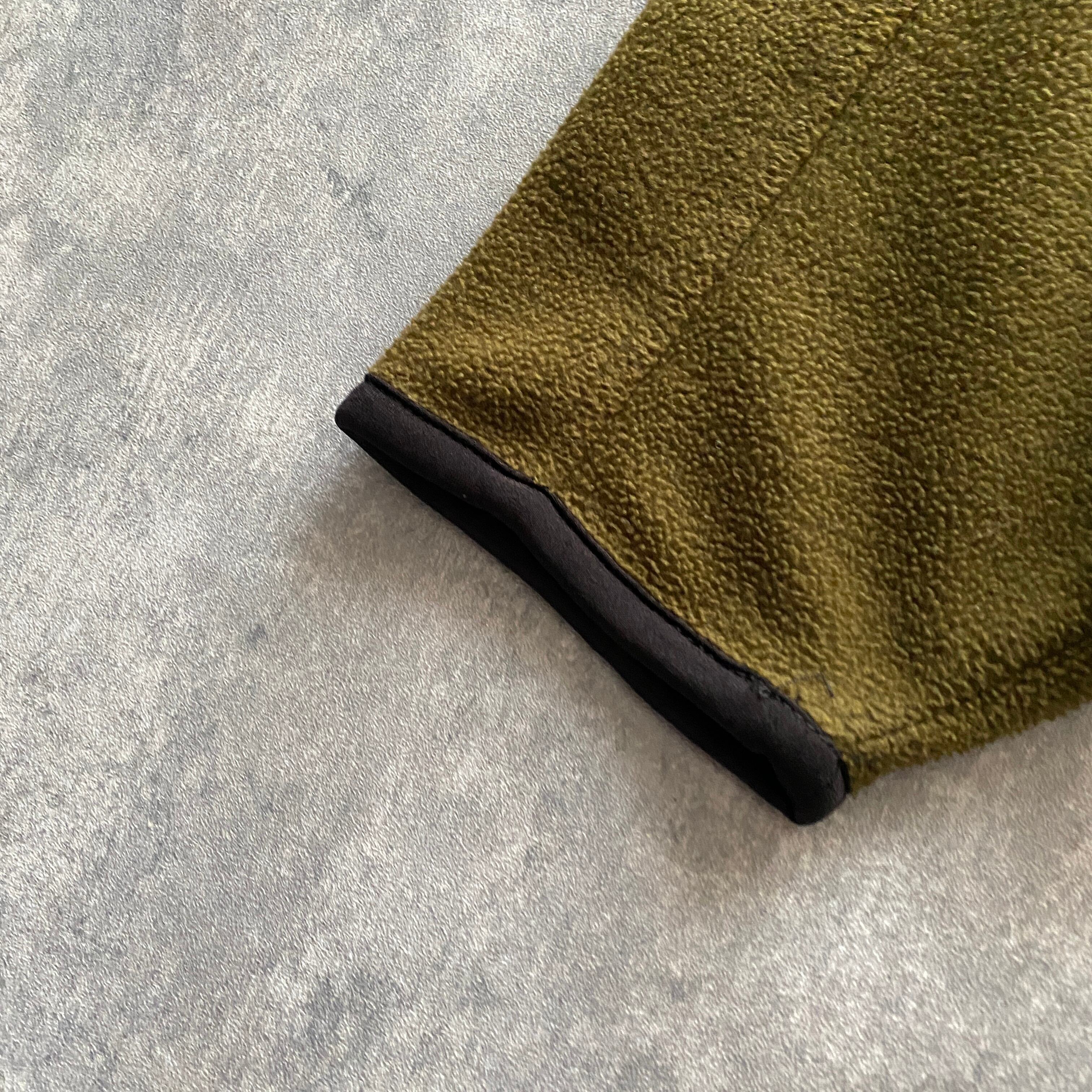 90s アディダス ハーフジップ センターロゴ カーキグリーン フリース