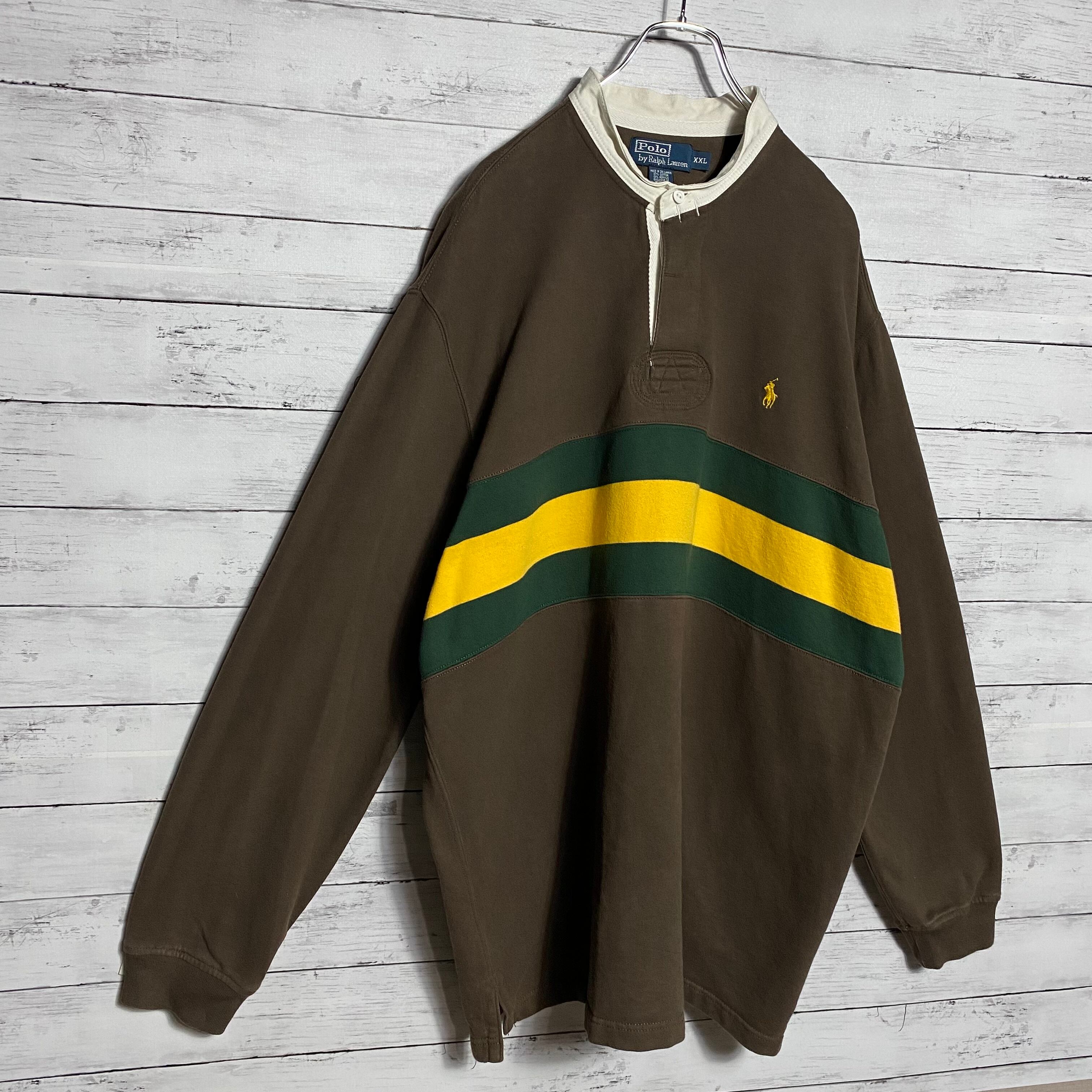 【2XLサイズ】90sポロラルフローレン 刺繍ワンポイント 襟無し ラガーシャツ