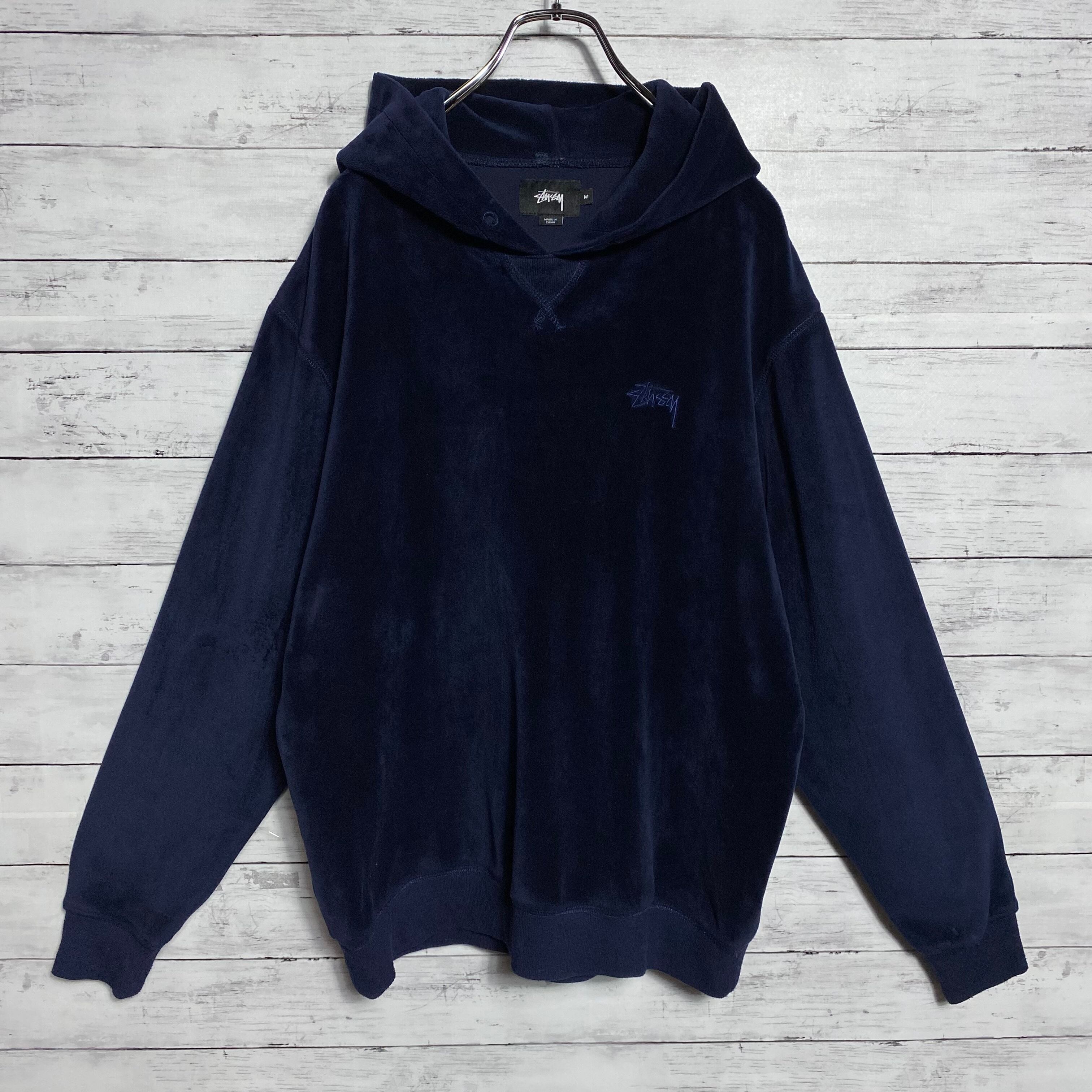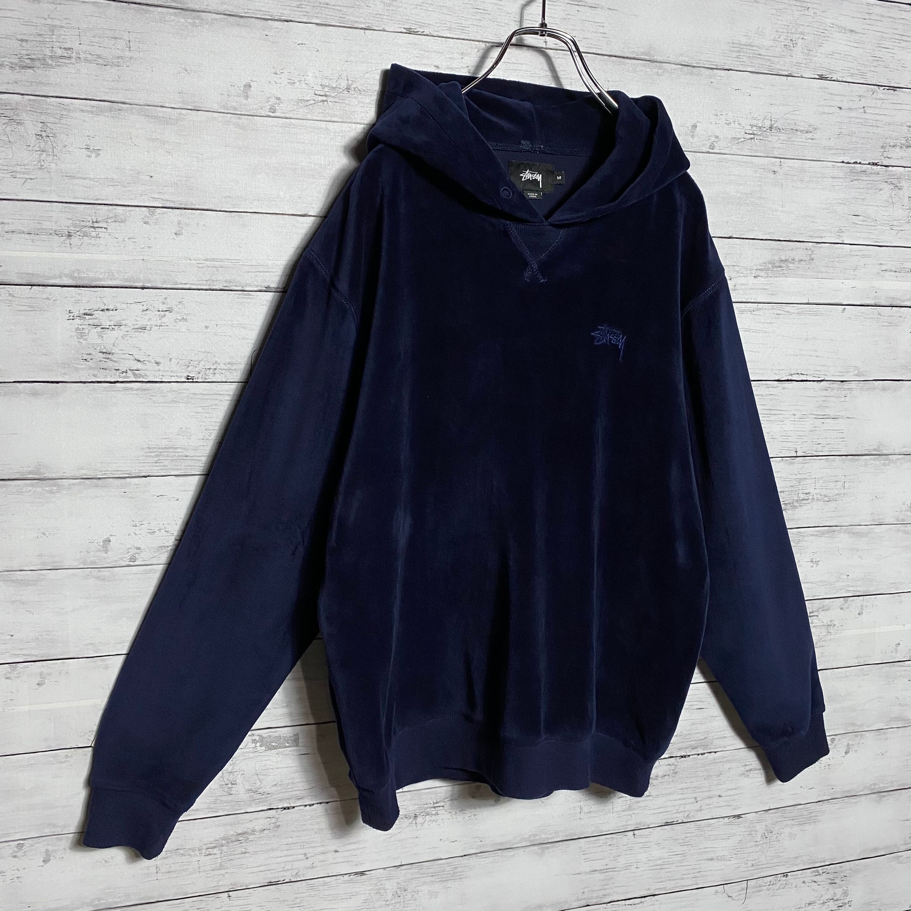 【ベロア生地】ステューシー ストックロゴ 刺繍ワンポイント パーカー