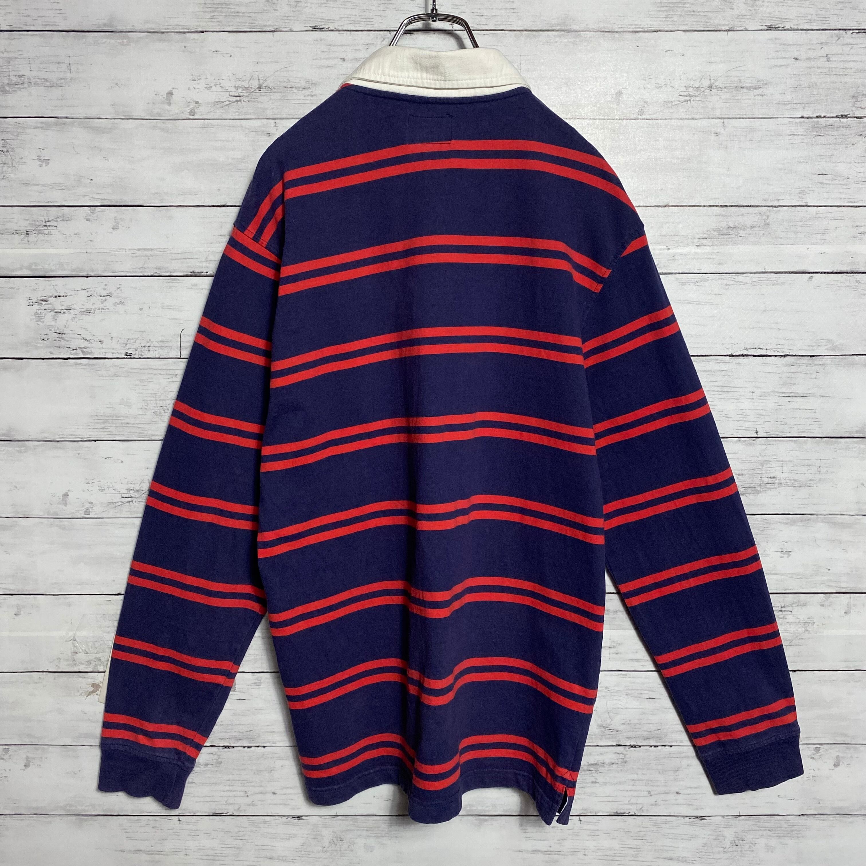 ステューシー 刺繍ワンポイントロゴ ボーダー ラガーシャツ