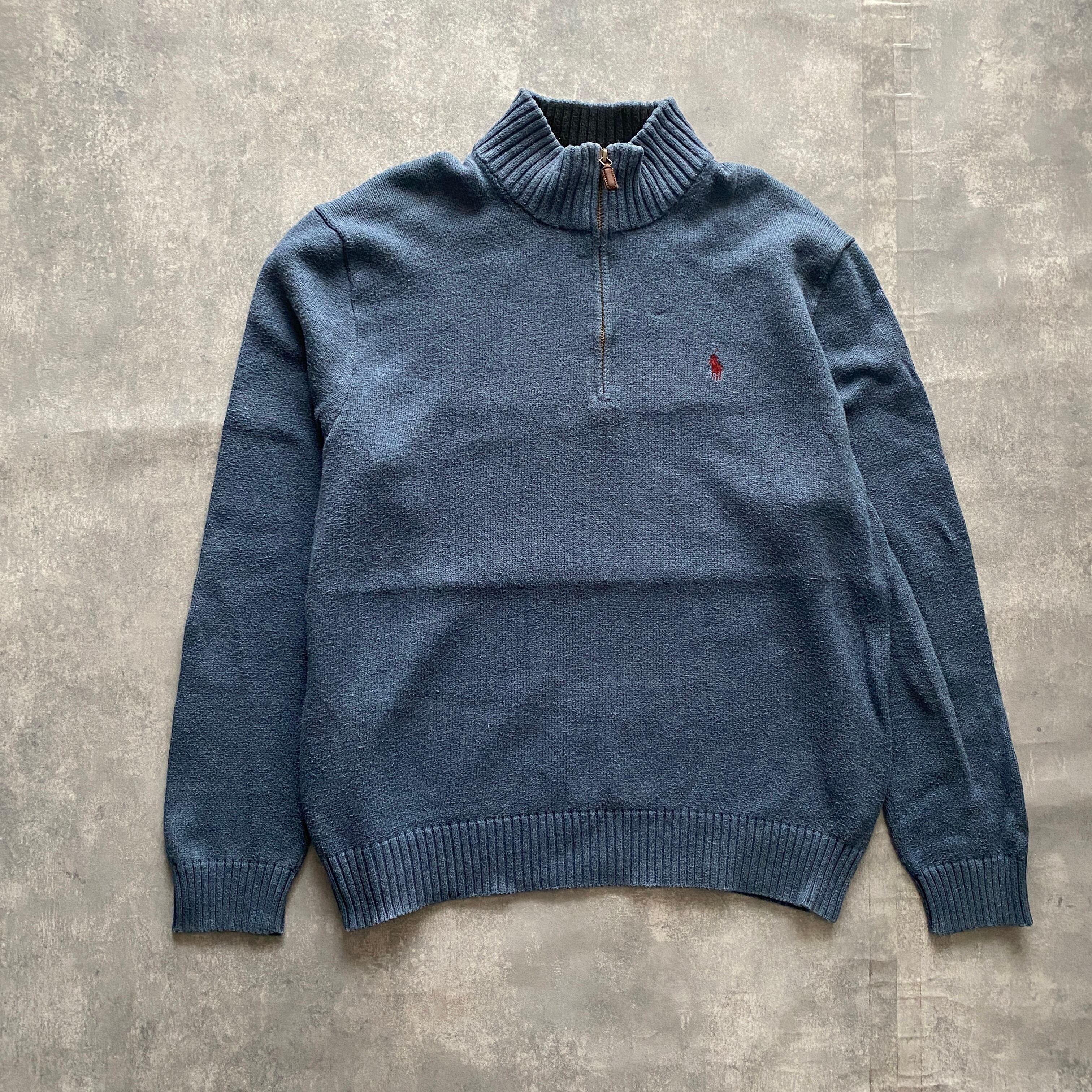 【XLサイズ】ポロラルフローレン 刺繍ワンポイント ハーフジップ コットンニット
