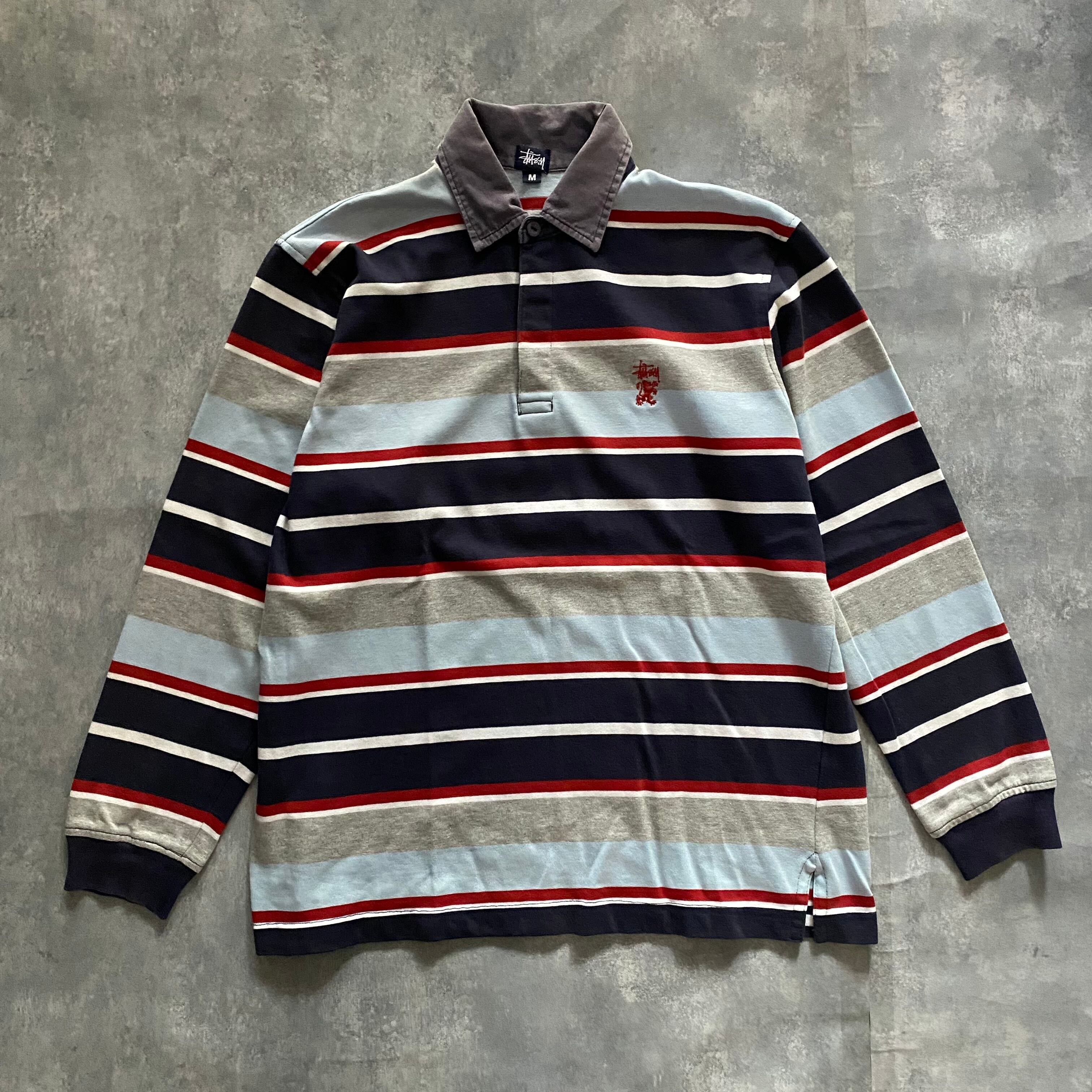 90s オールドステューシー 刺繍ワンポイントロゴ ボーダー ラガーシャツ