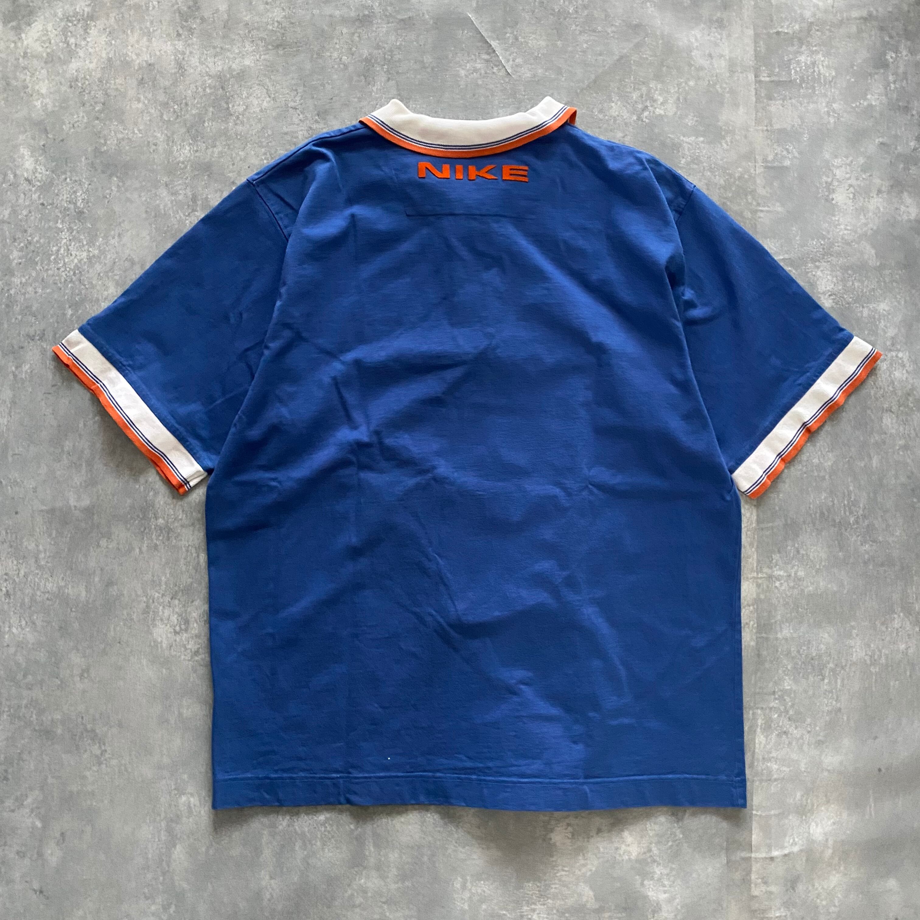 90s ナイキ ハーフジップ スウォッシュ 刺繍ワンポイントロゴ ポロシャツ