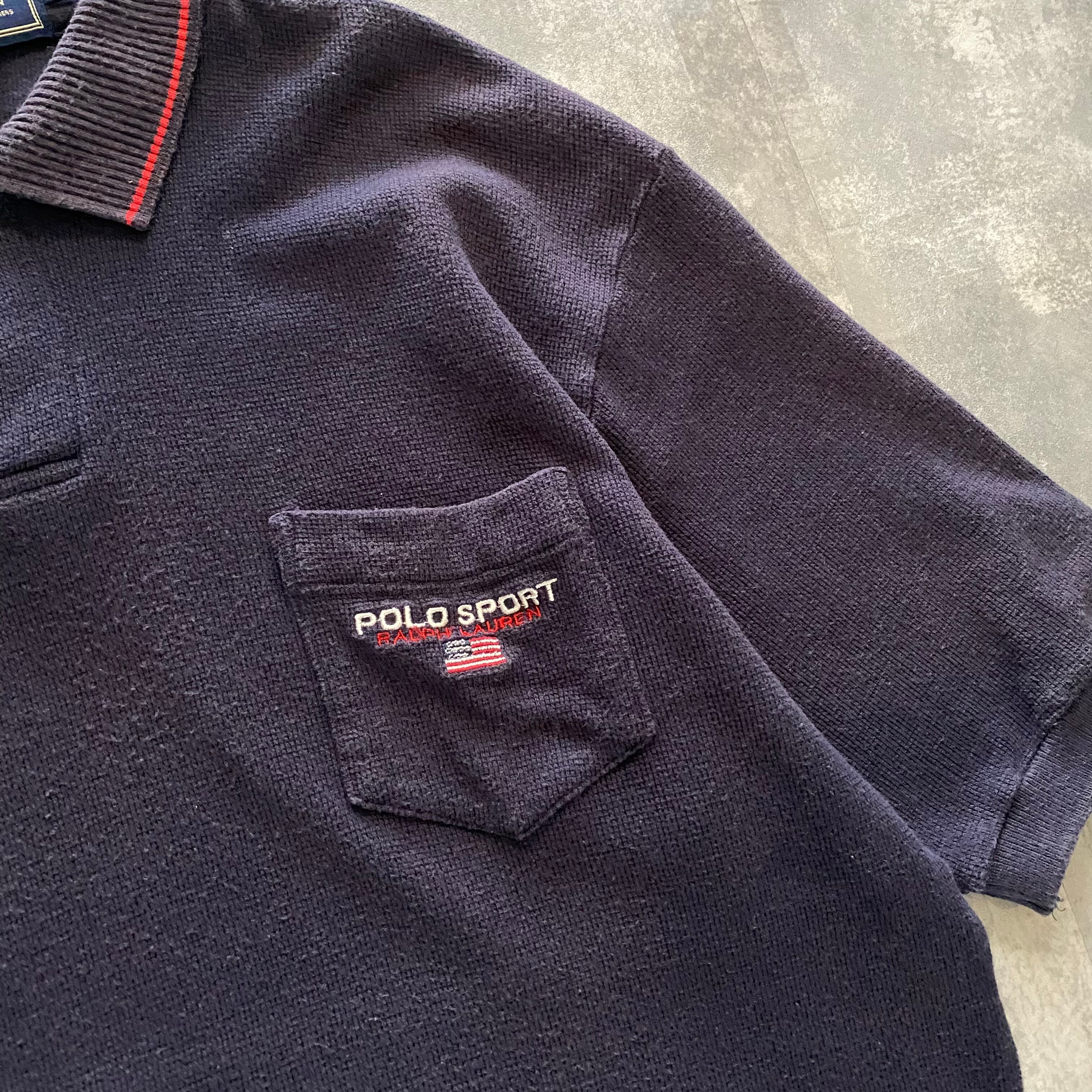90s ラルフローレン ポロスポーツ 刺繍ワンポイントロゴ サマーニット
