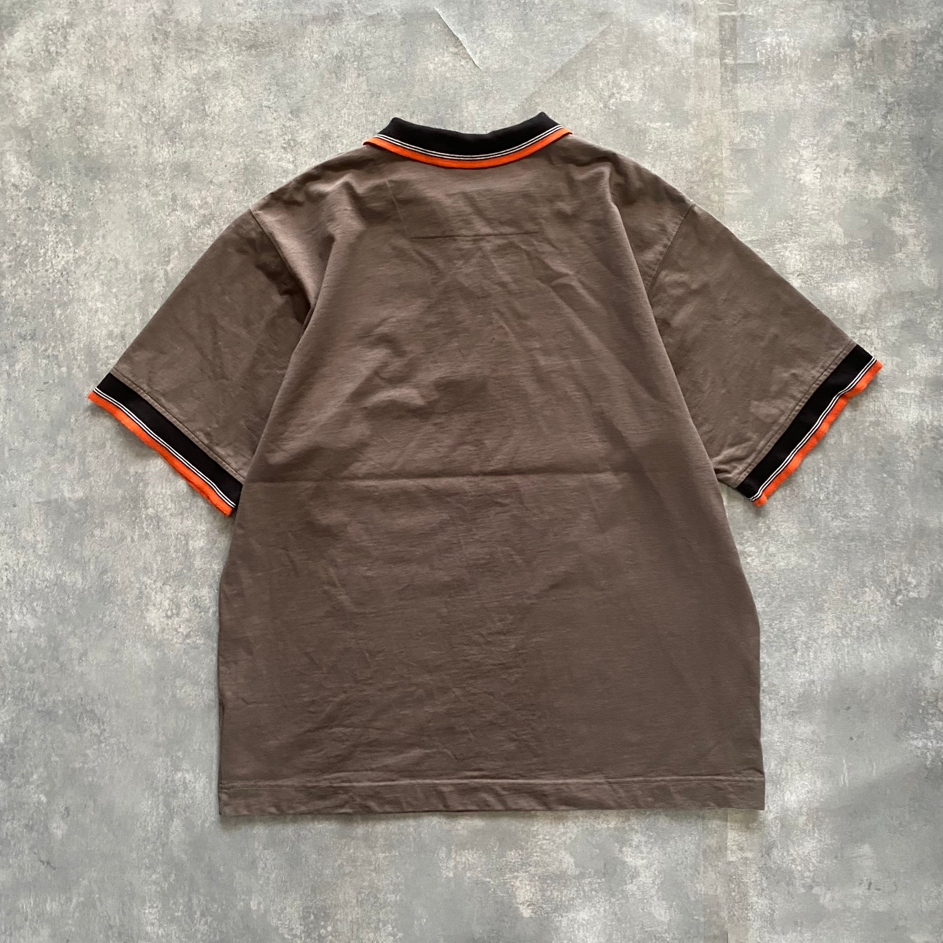 90s ナイキ ハーフジップ スウォッシュ 刺繍ワンポイントロゴ ポロシャツ