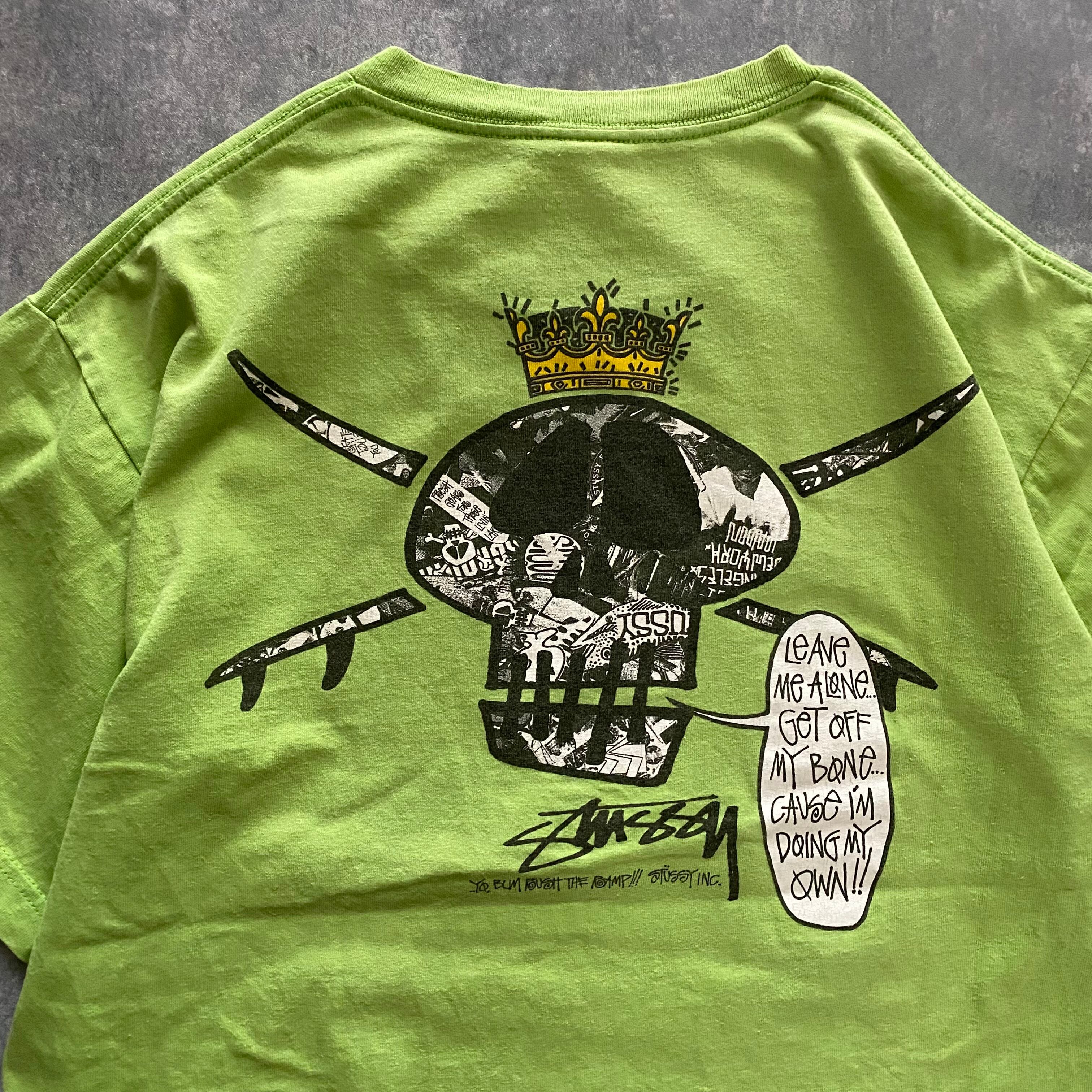 00‘s ステューシー スカルロゴ バックプリント グリーン Tシャツ