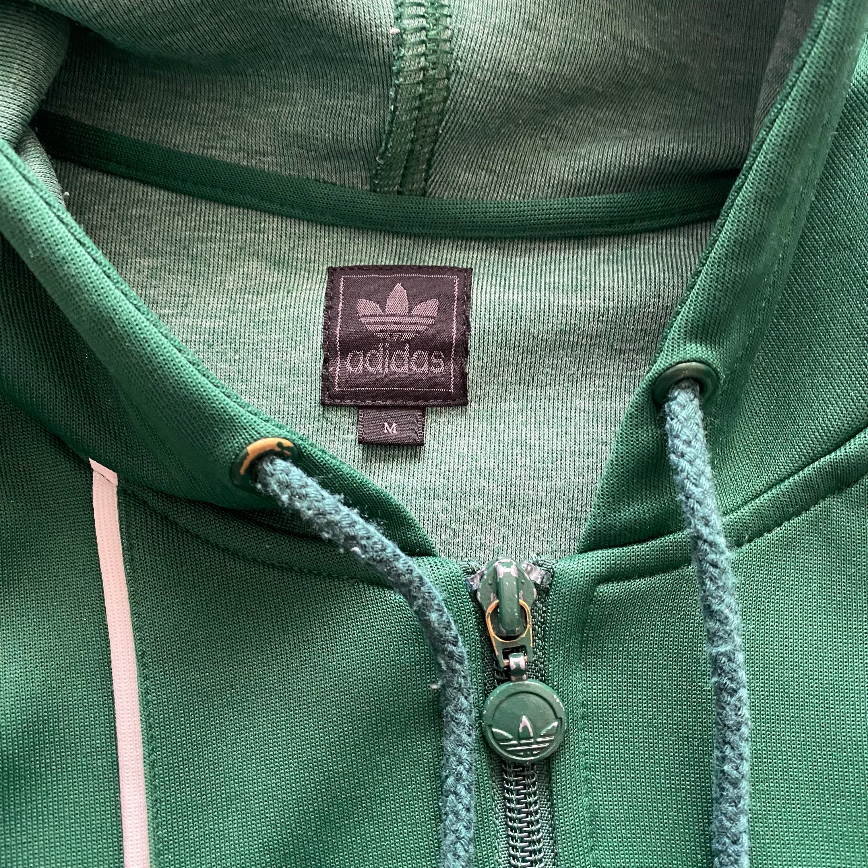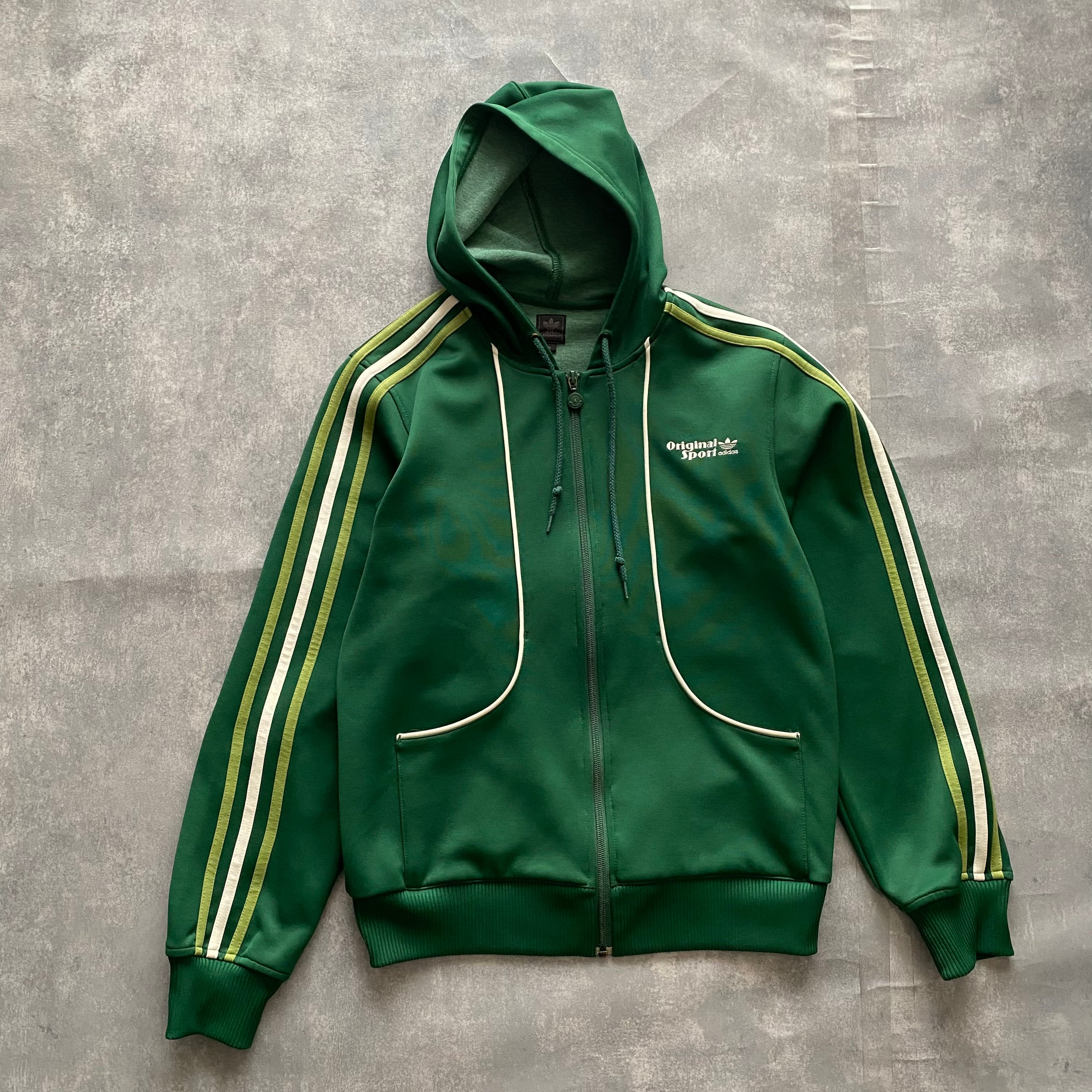 アディダス 刺繍ワンポイントロゴ グリーン フード付き ジャージ