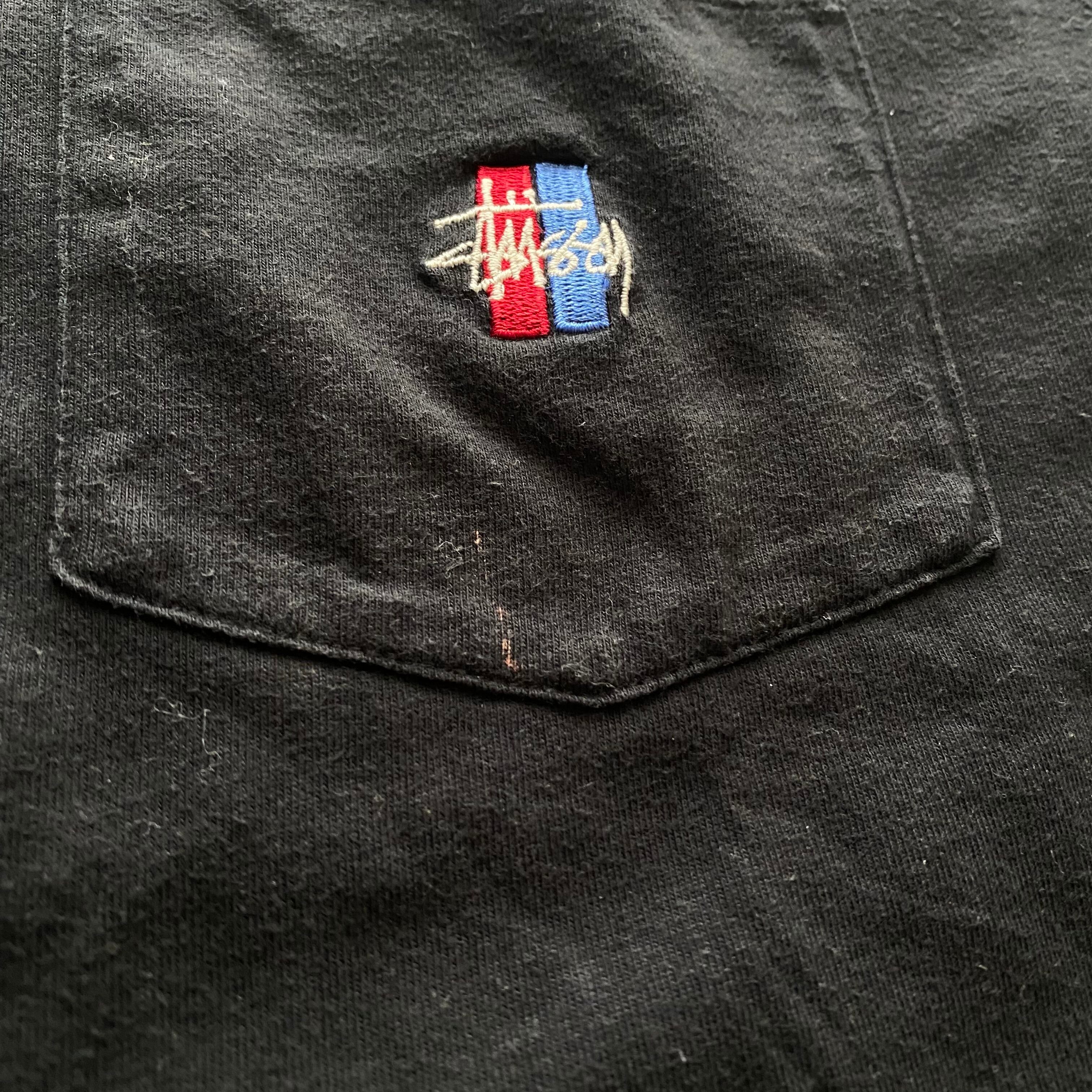 90s オールドステューシー 刺繍ワンポイントロゴ ブラック ポロシャツ