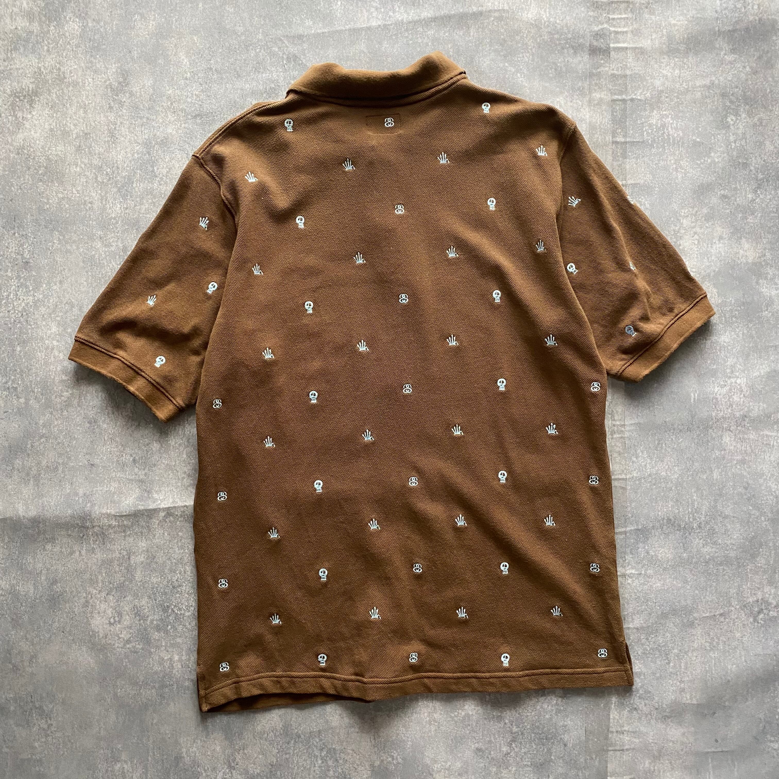 00‘s ステューシー 刺繍ランダムロゴ ブラウン ポロシャツ