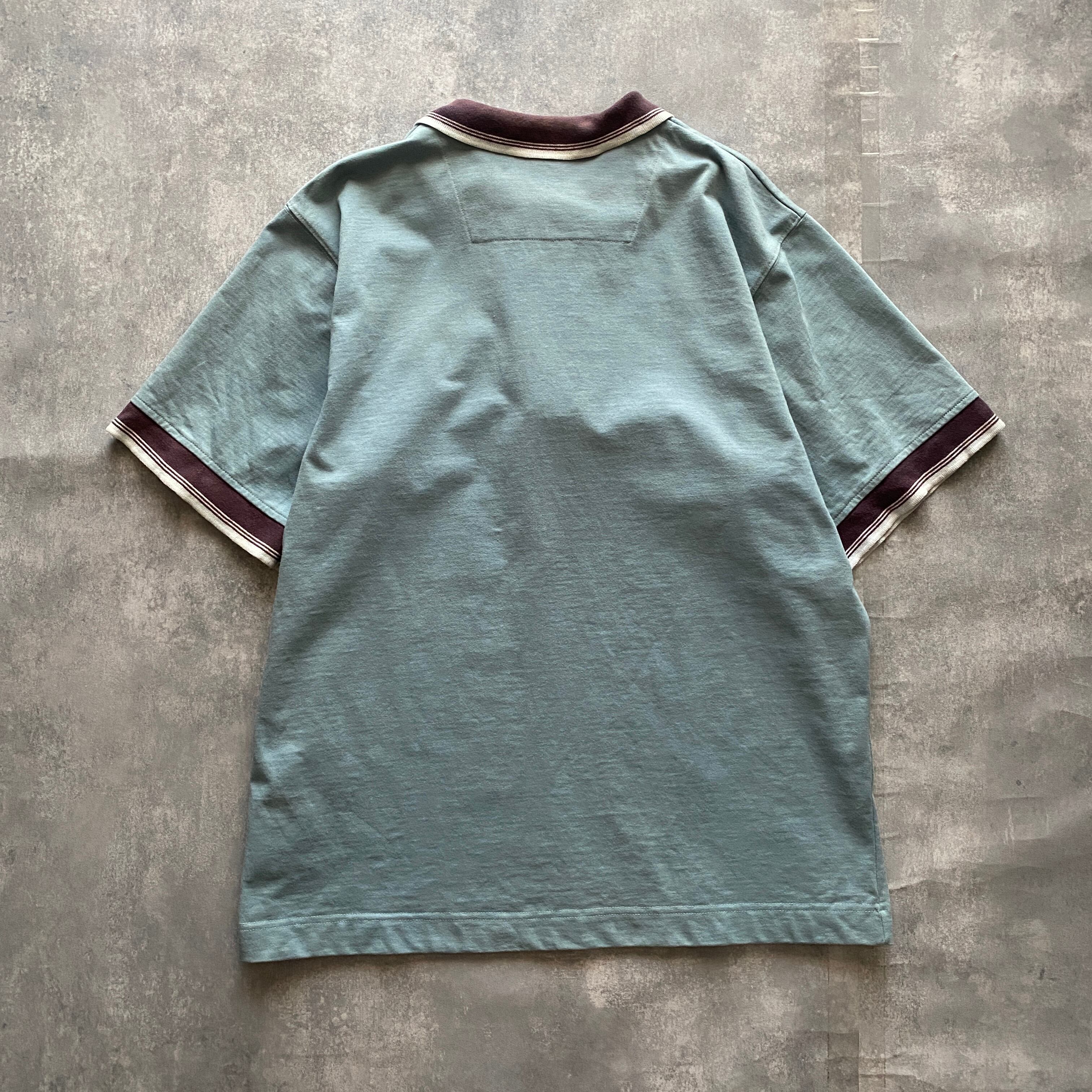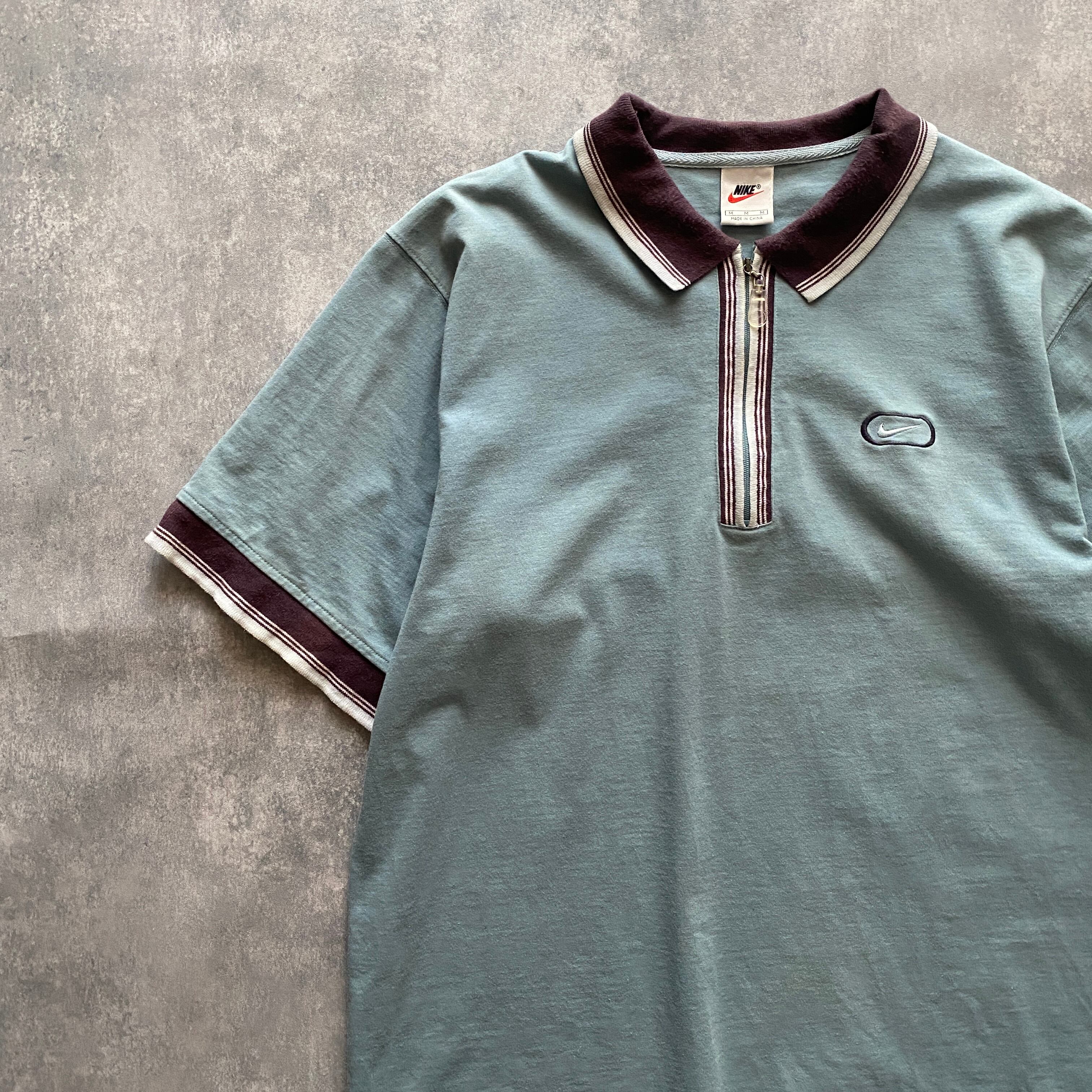 90's ナイキ スウォッシュ 刺繍ワンポイントロゴ ハーフジップ ラインリブ ポロシャツ