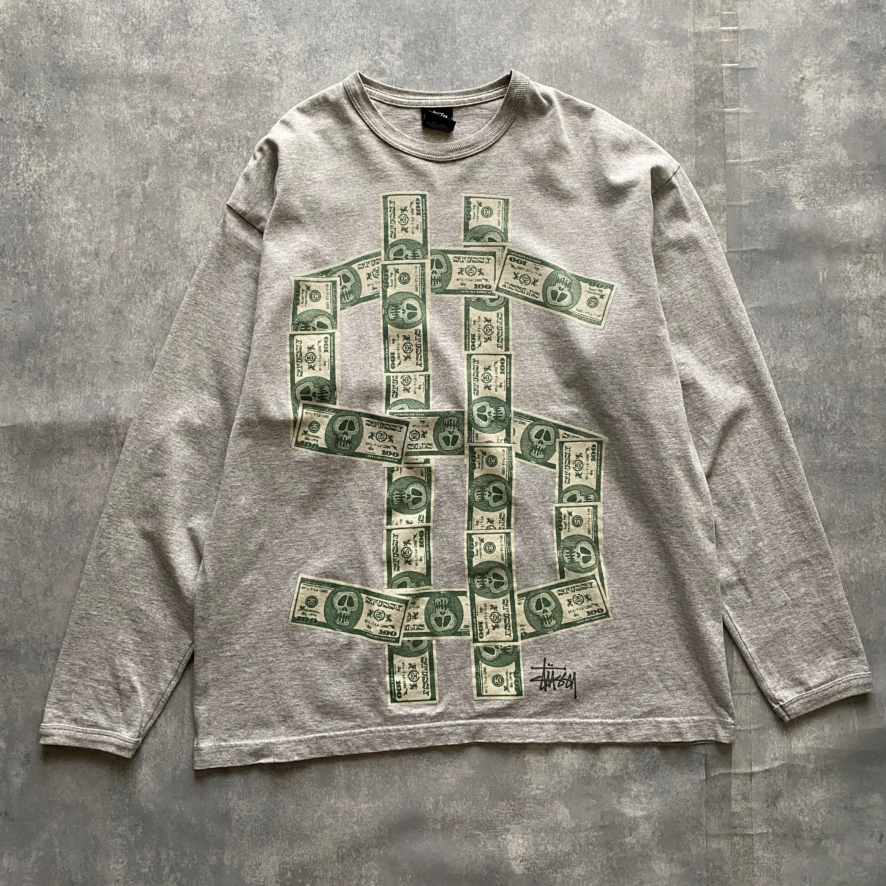 00’s ステューシー スカル×ドル札 プリントロゴ Tシャツ ロンT