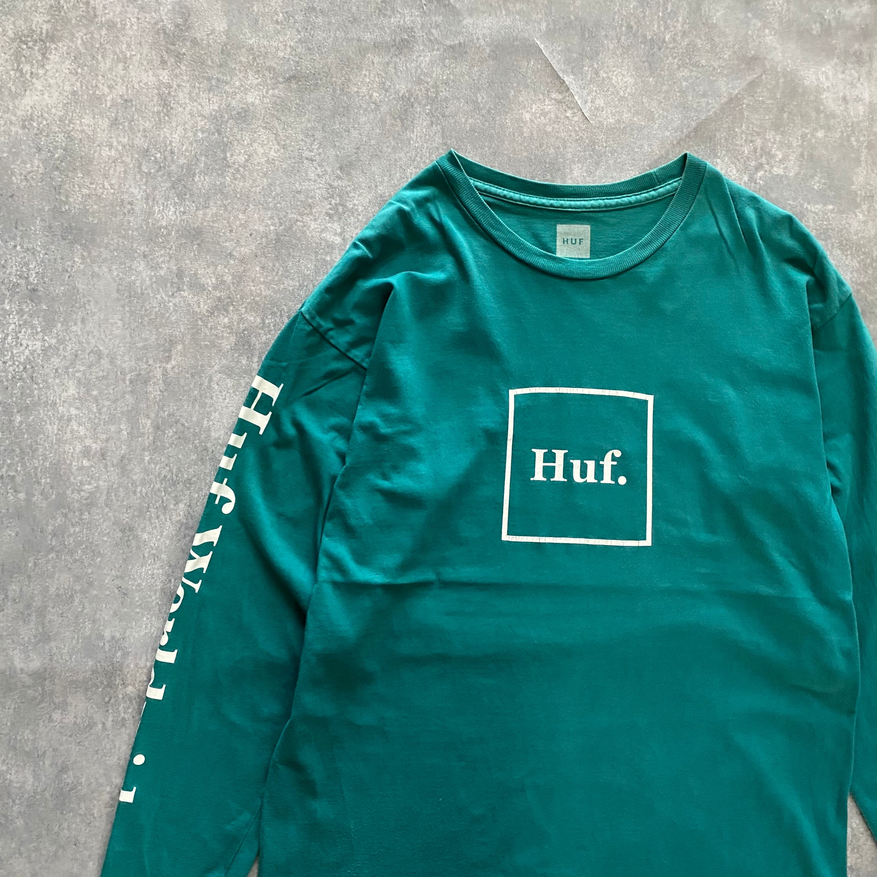 HUF ハフ プリント ボックスロゴ スリーブロゴ グリーン Tシャツ ロンT