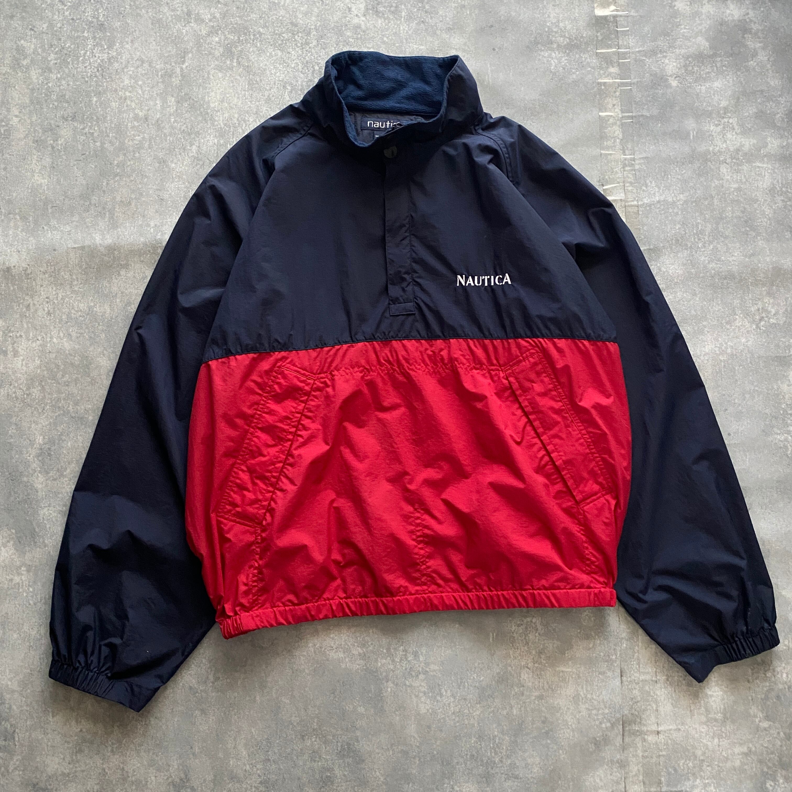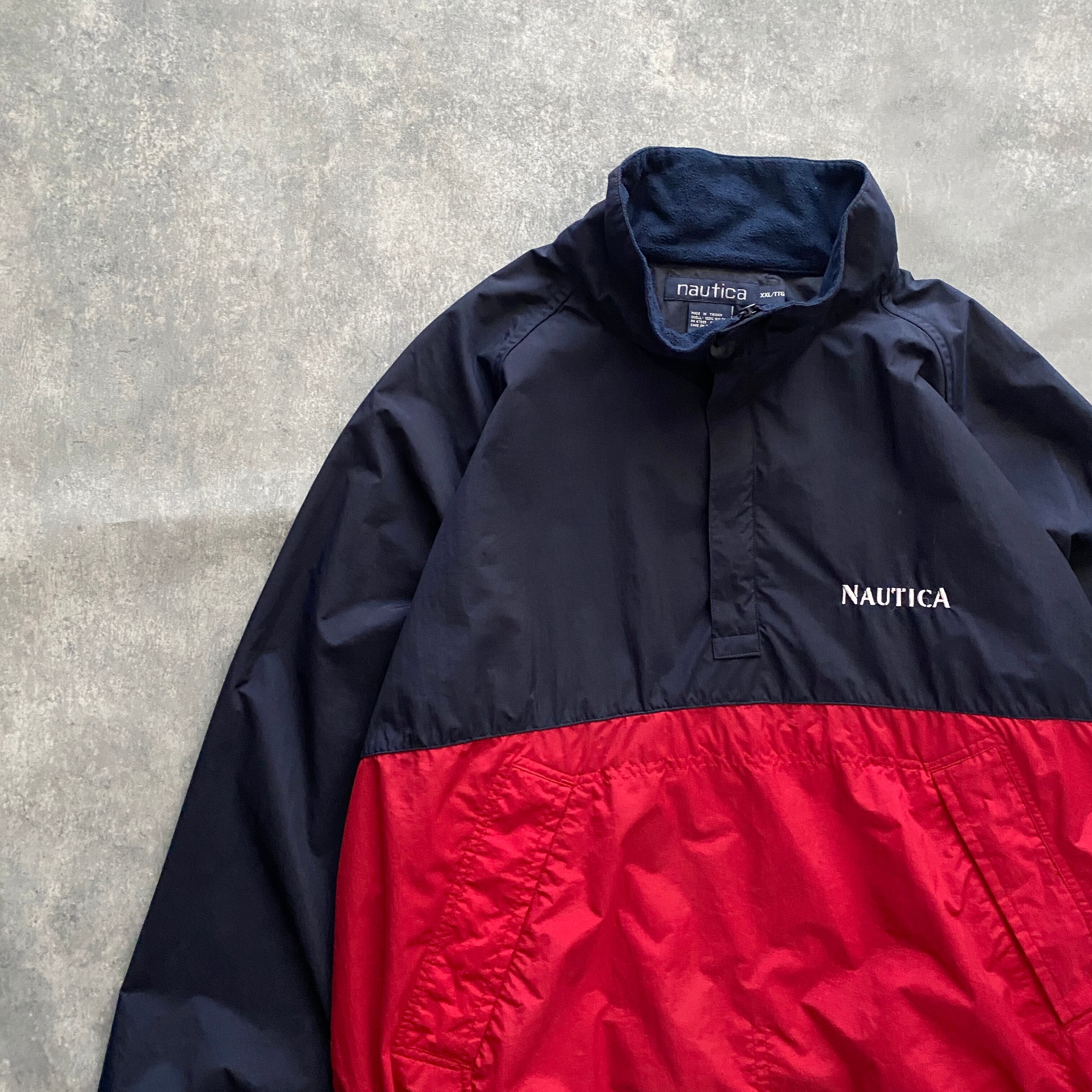 【XXLサイズ】90’s ノーティカ 刺繍ワンポイントロゴ ハーフジップ バイカラー ナイロン アノラック