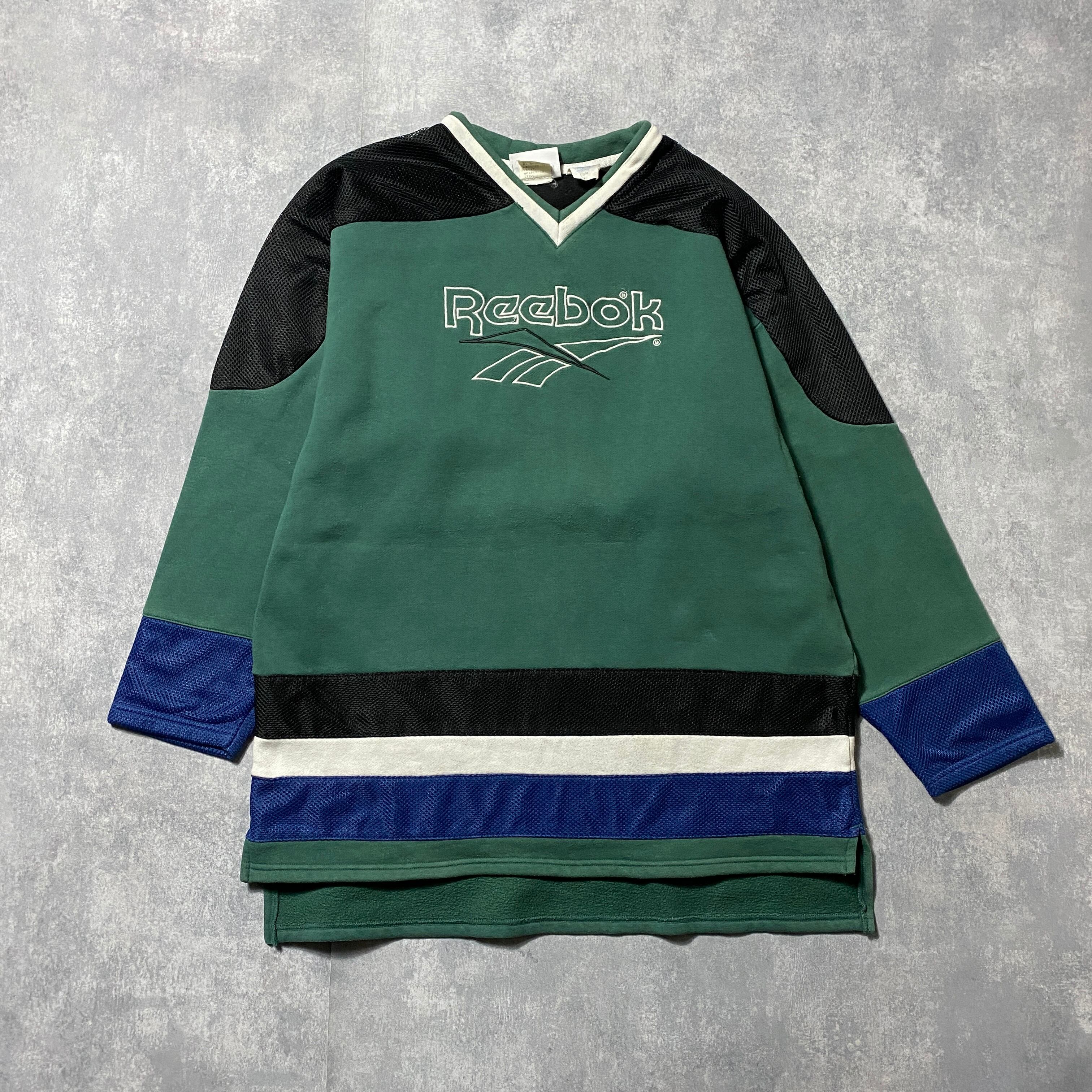 90’s リーボック 刺繍ベクターロゴ ラインリブ メッシュ混 スウェット