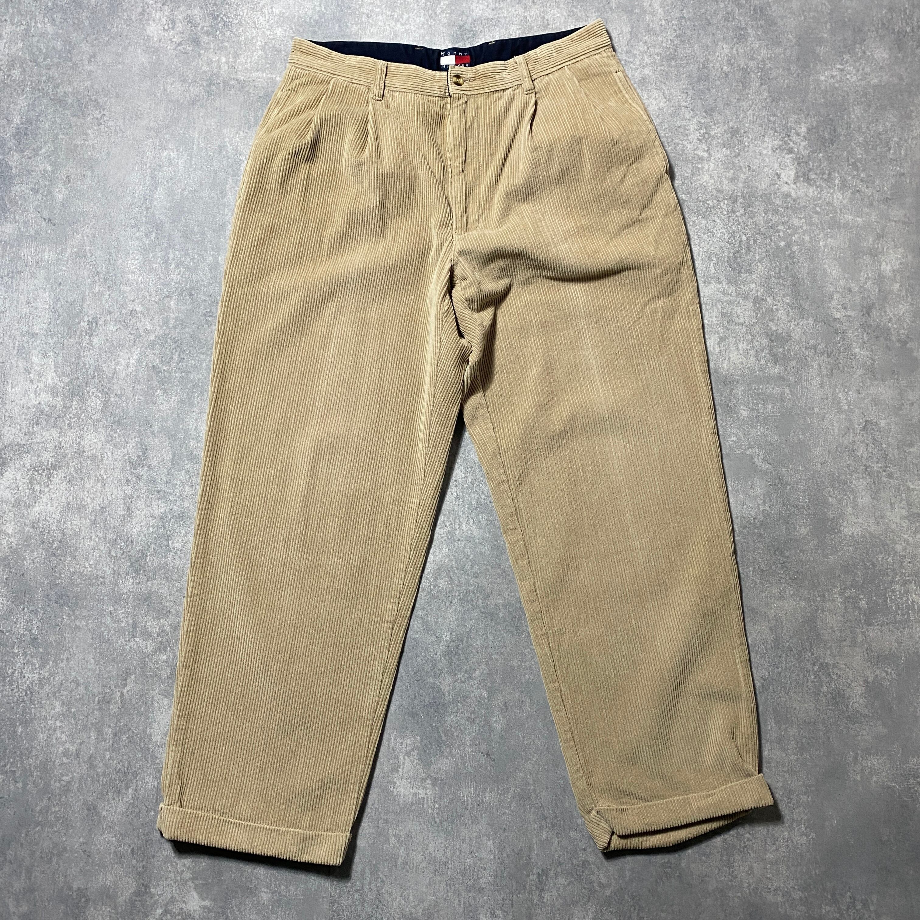 90‘s トミーヒルフィガー 刺繍ロゴ ベージュ 2タック コーデュロイパンツ