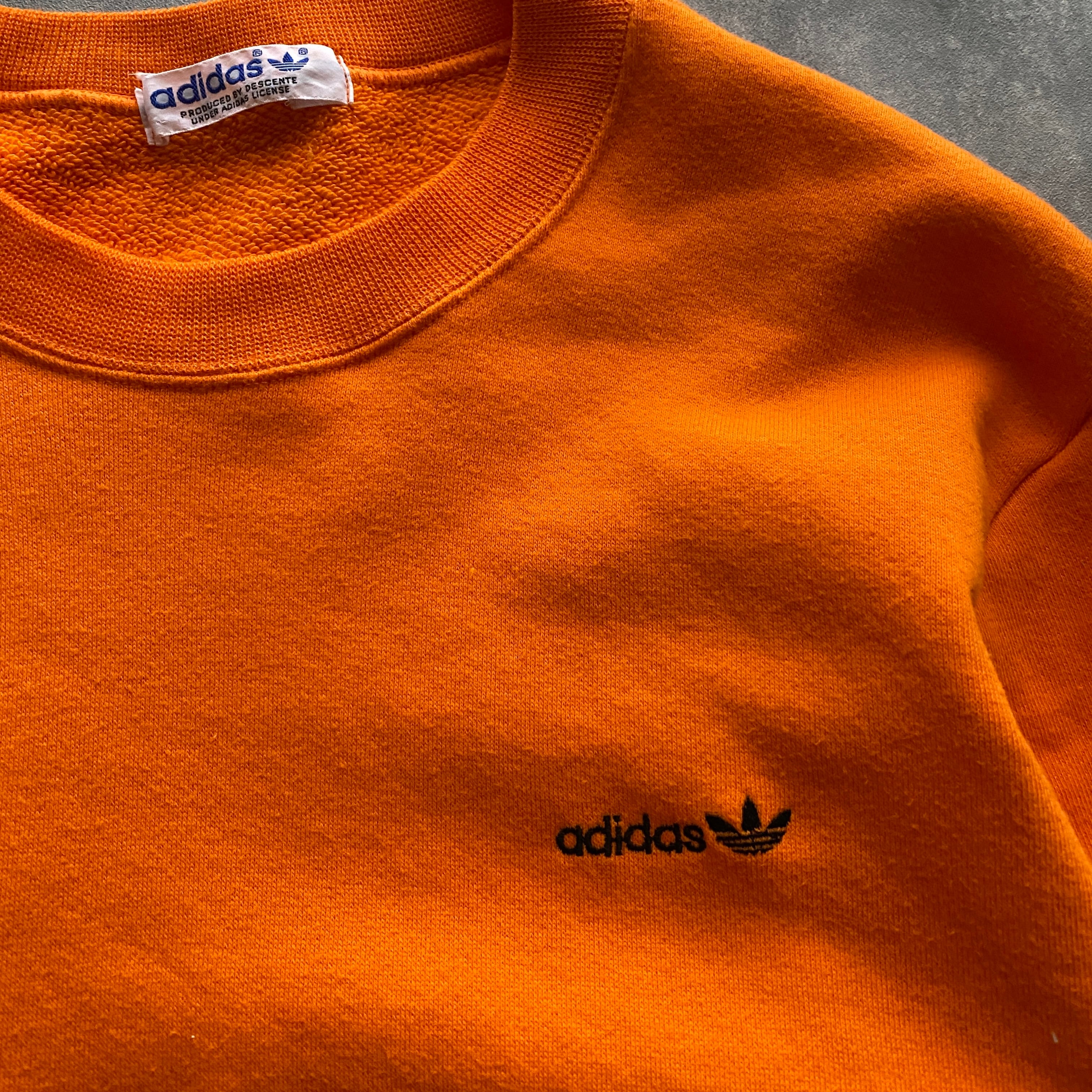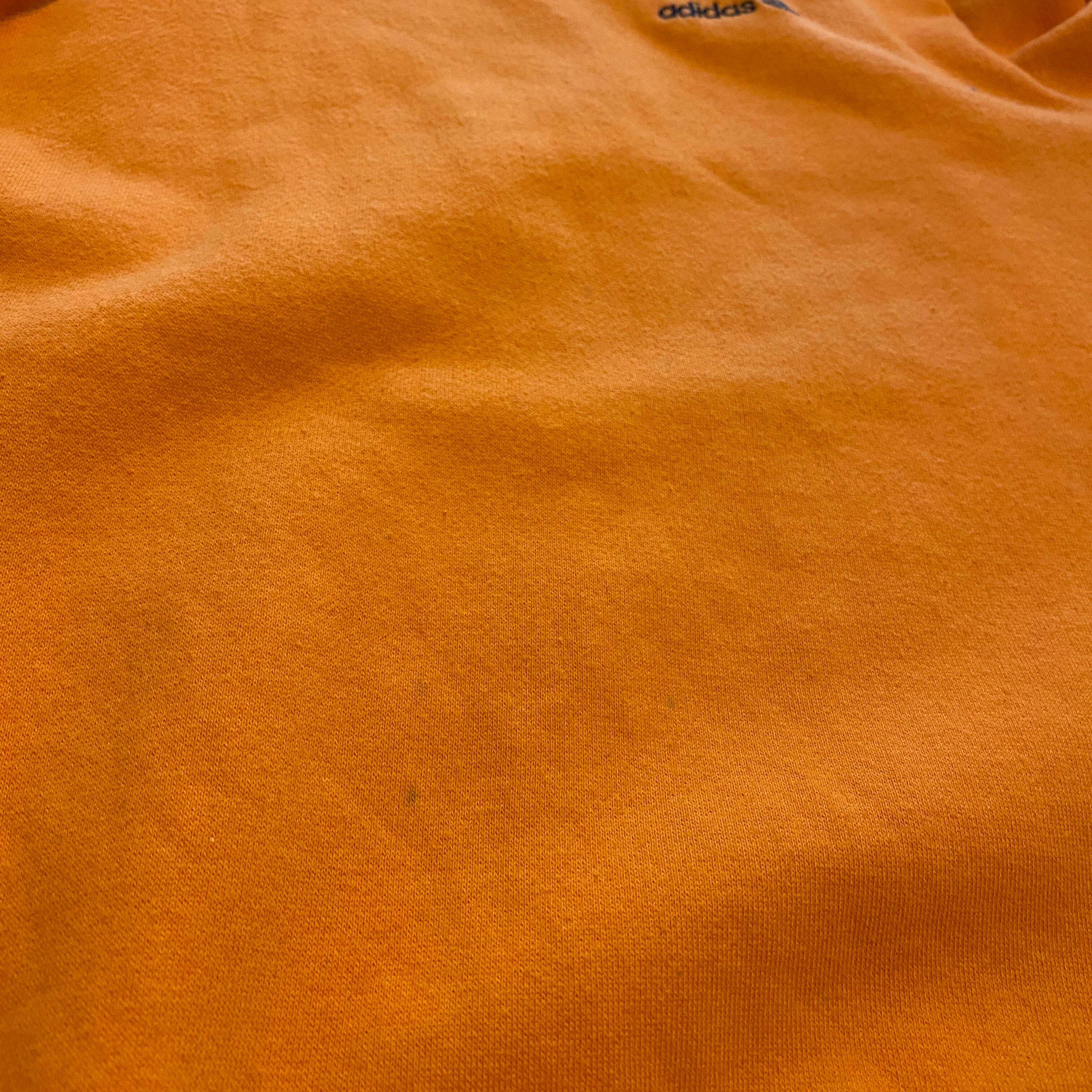 90's adidas デサントアディダス トレフォイル 刺繍ワンポイントロゴ オレンジ スウェット