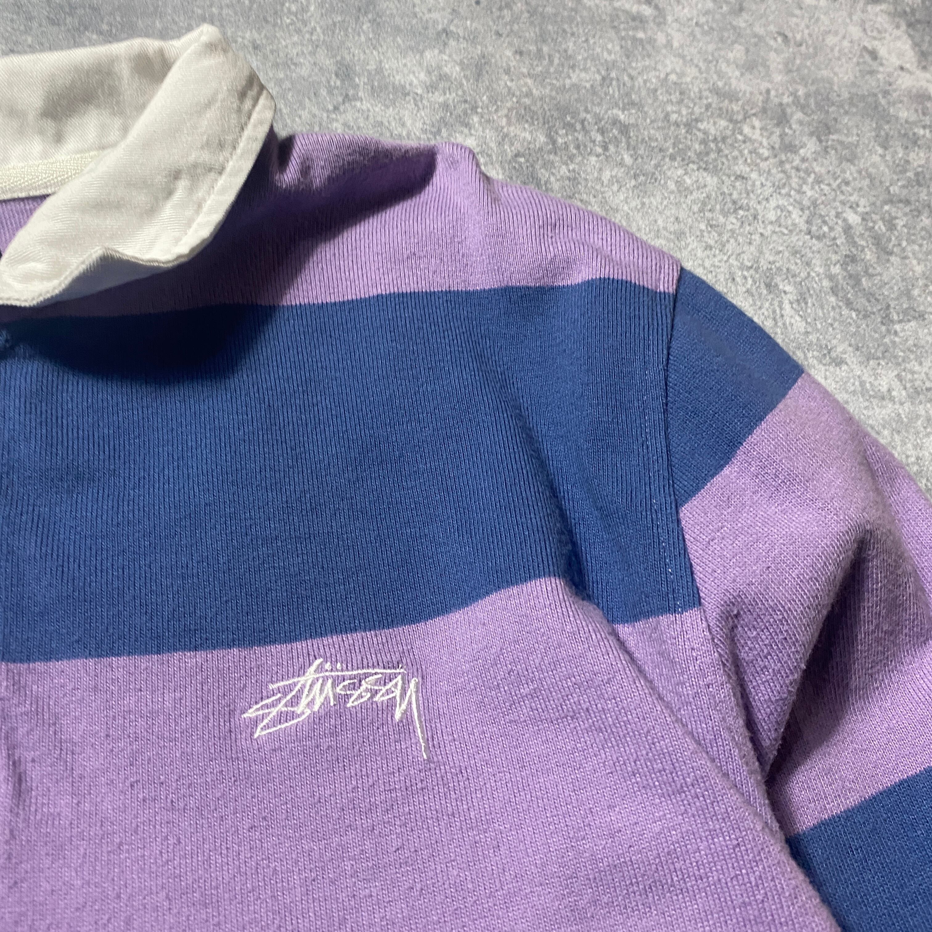 stussy ステューシー 刺繍ワンポイント ストックロゴ パープル ボーダー ラガーシャツ
