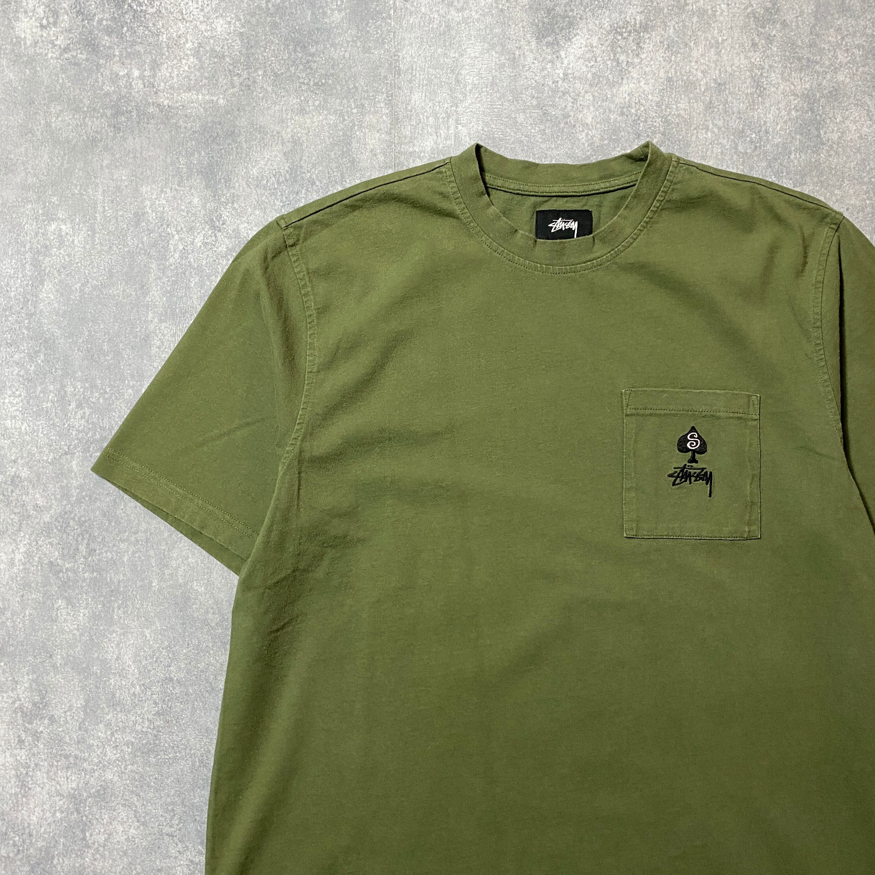 stussy ステューシー スペード 刺繍ワンポイント グリーン Tシャツ ポケT