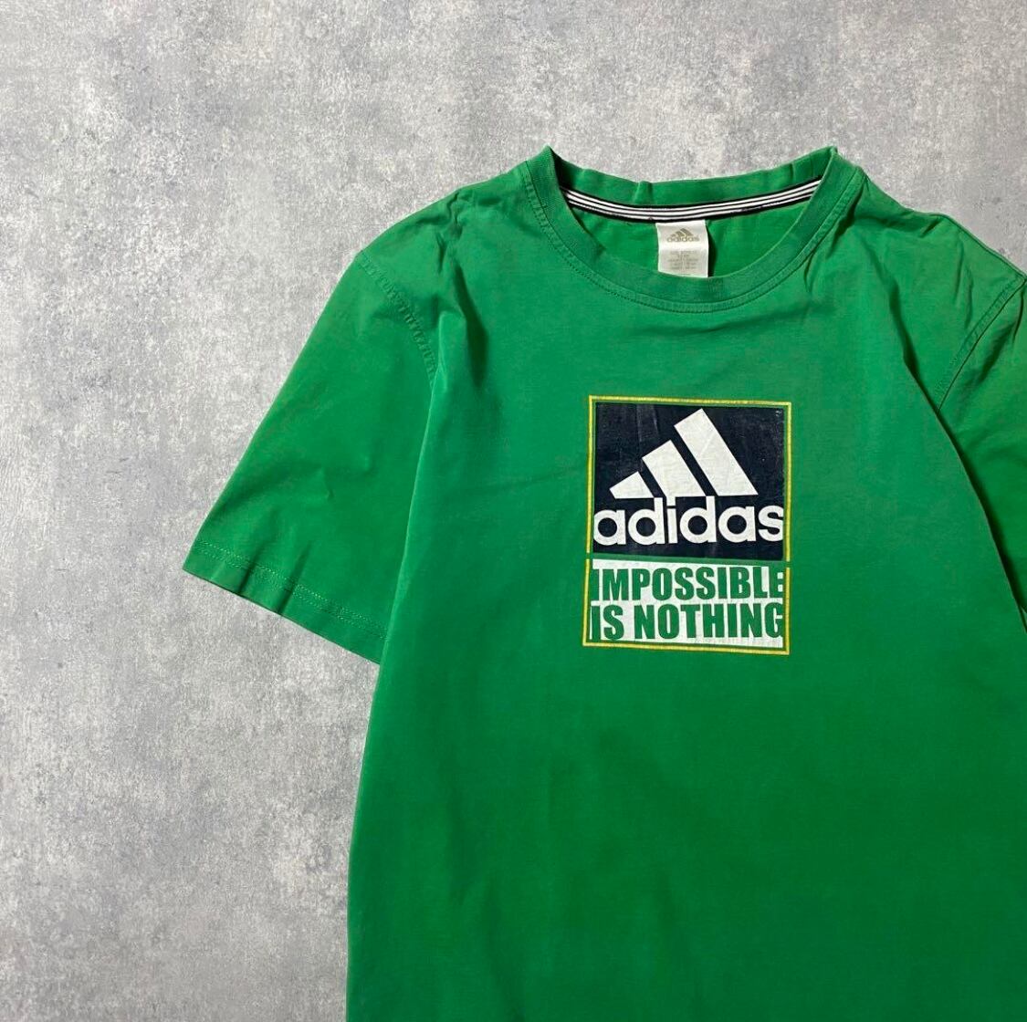00‘s アディダス プリント ボックスロゴ グリーン Tシャツ
