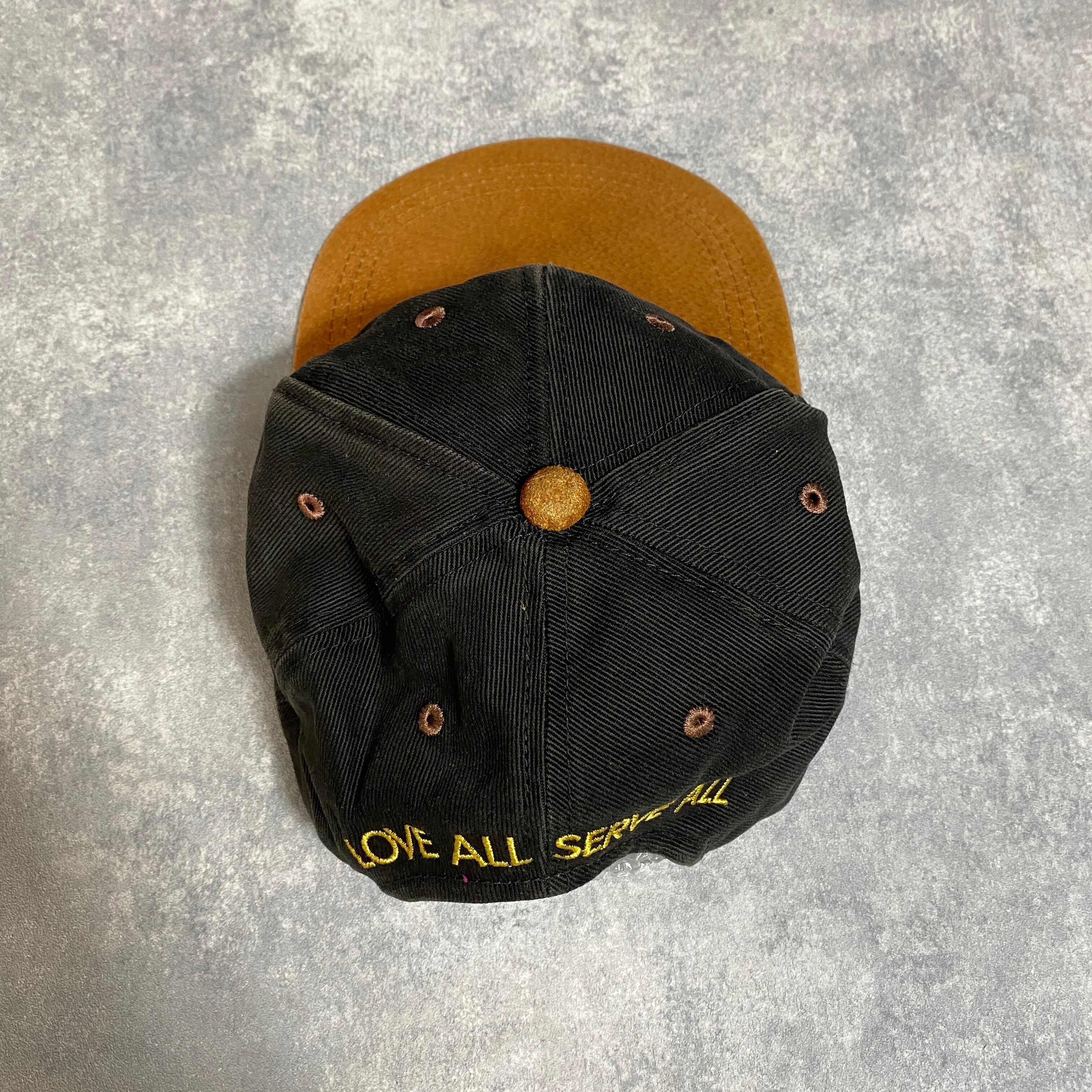 90's Hard Rock Cafe ハードロックカフェ 刺繍ロゴ レザー スナップバック キャップ