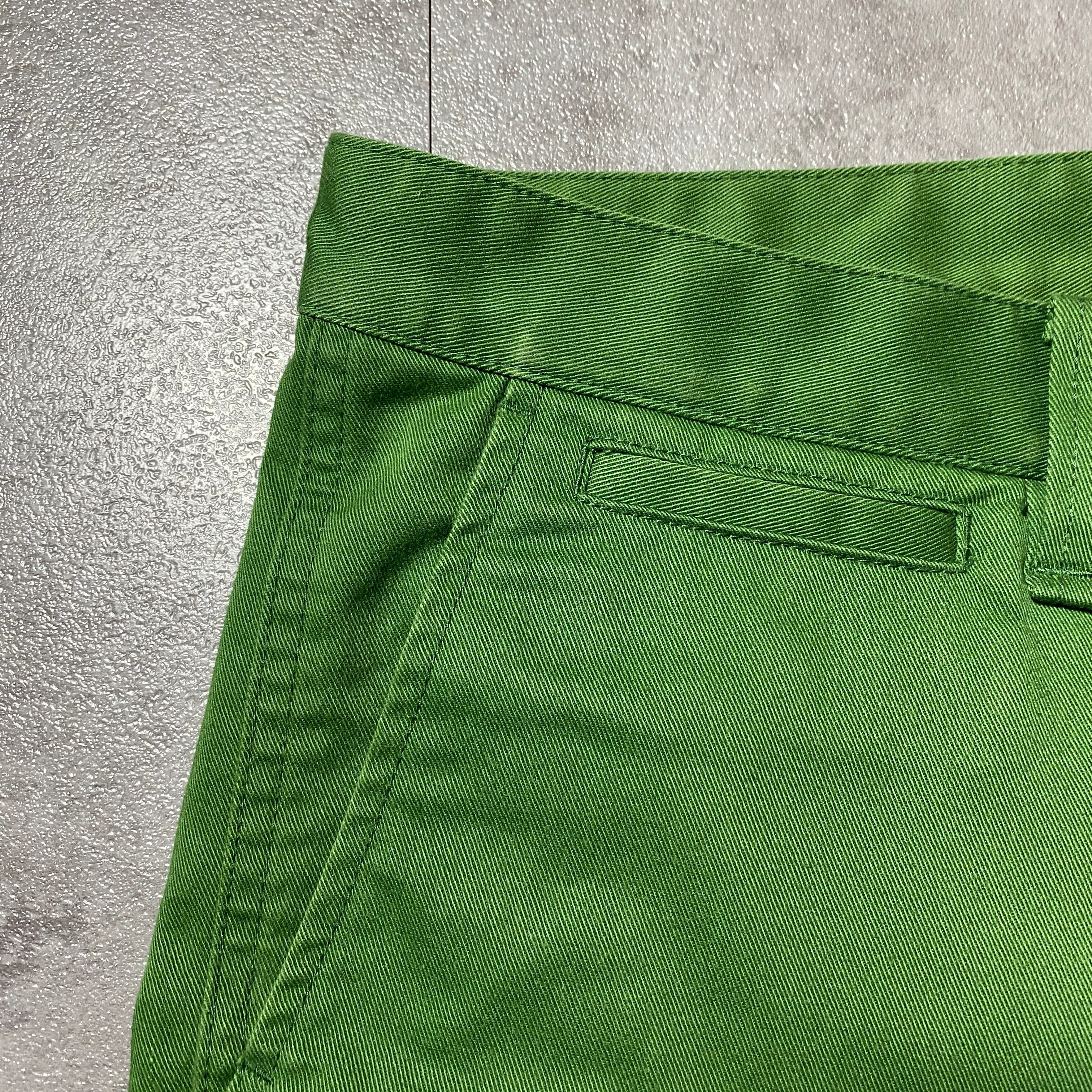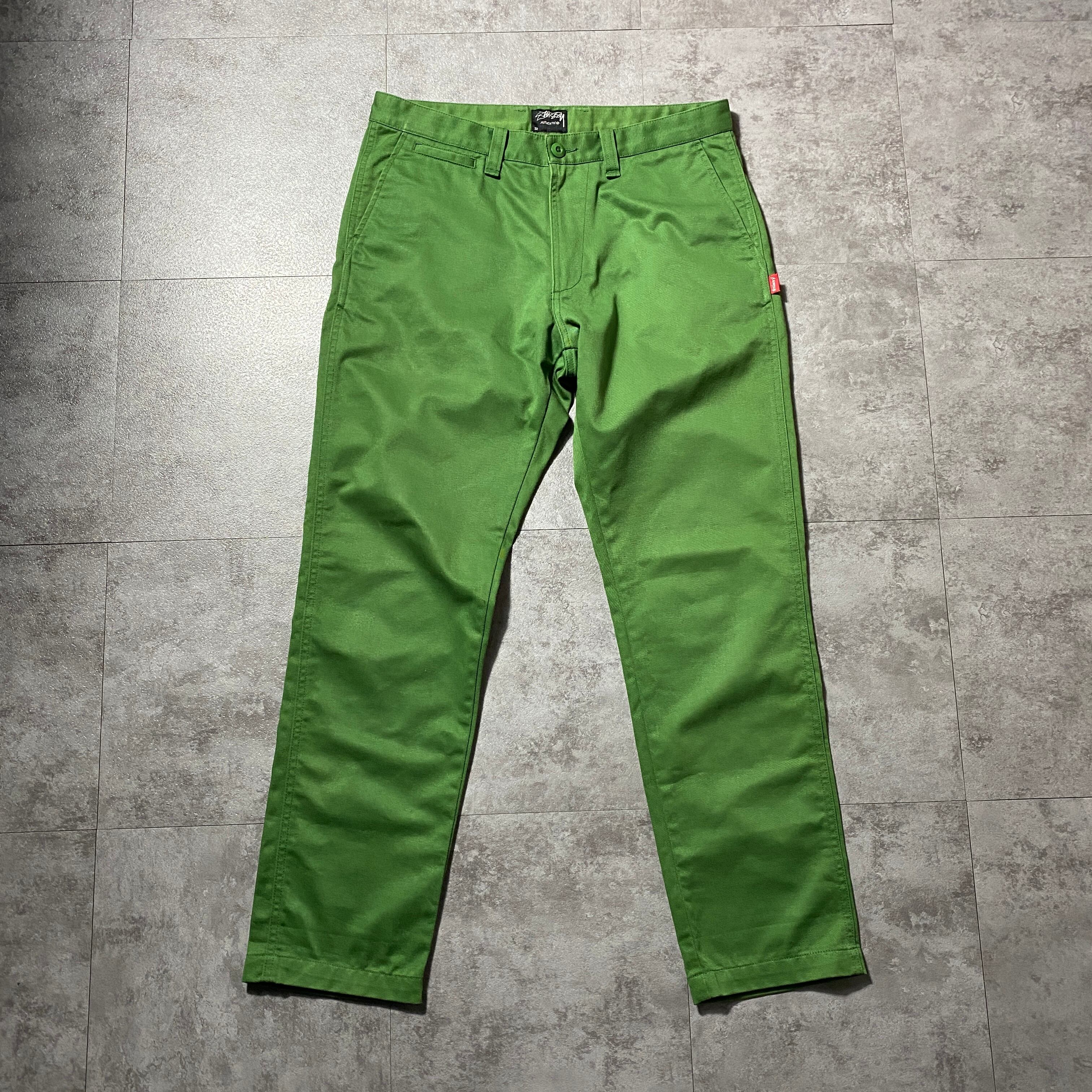 【32inch】stussy ステューシー ジッパーフライ ショーンフォント 刺繍ロゴ グリーン カラーパンツ チノパン