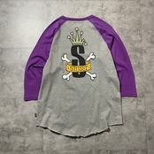 00's stussy ステューシー 折れクラウン×Sロゴ×ボーン バックプリント 七分丈 ラグランTシャツ