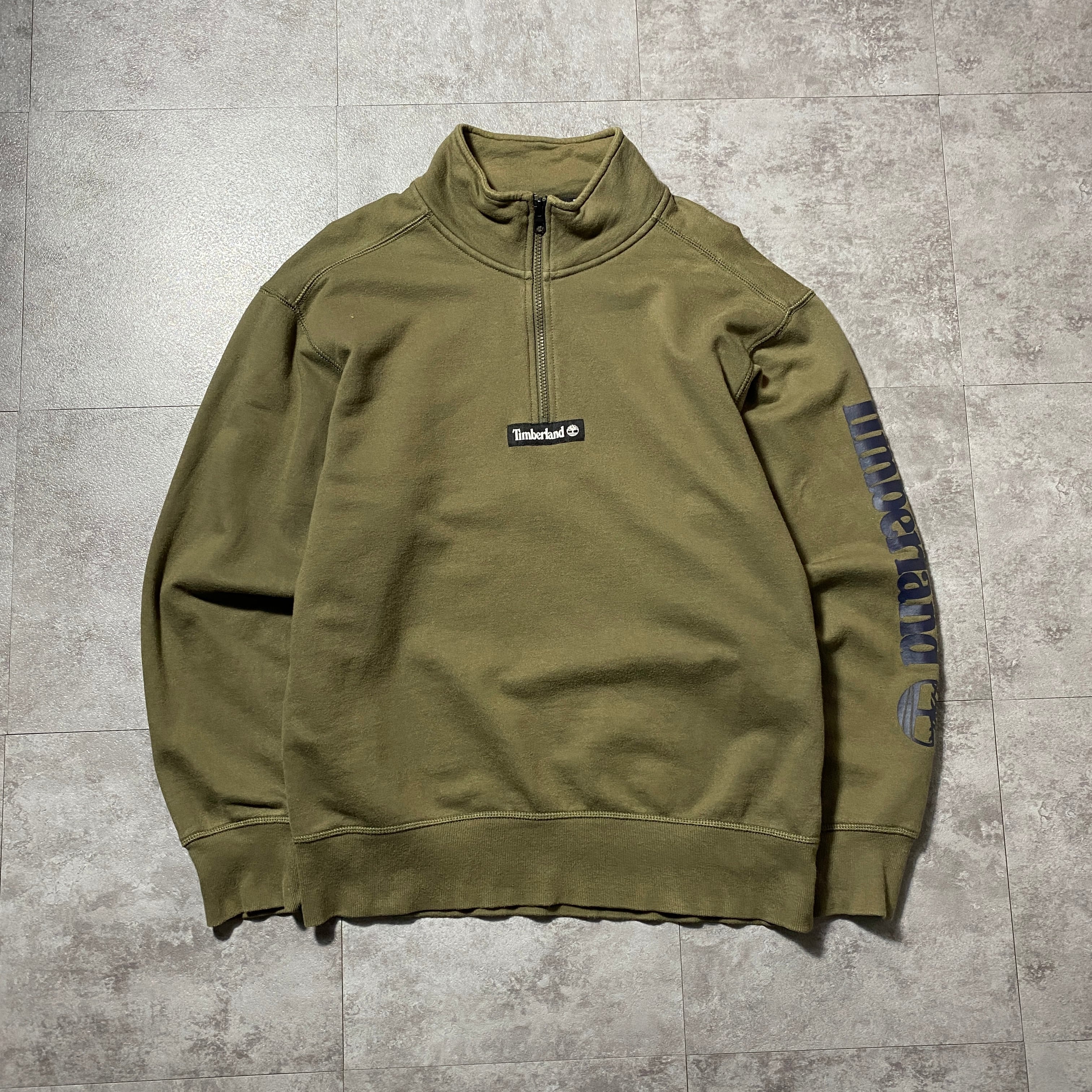 Timberland ティンバーランド ハーフジップ バックプリント カーキグリーン スウェット トレーナー